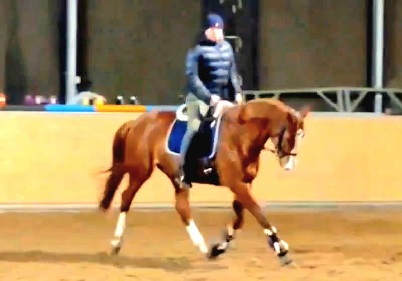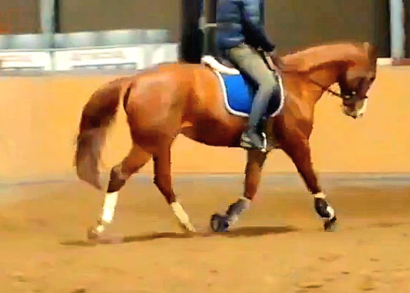 Beautiful chestnut mare with four white markings, available for sale. Wunderqueen is easy to ride and very well-behaved. She is also suitable for trail riding, the blacksmith, trailer loading, and handling in general, truly a very sweet mare. She has already competed in an A** show jumping competition and has won a hunt ride. The mare is also interesting for breeding, with pedigree including Weltmeyer, Donnerhall, and QuandoQuando. Feel free to contact me for further questions.