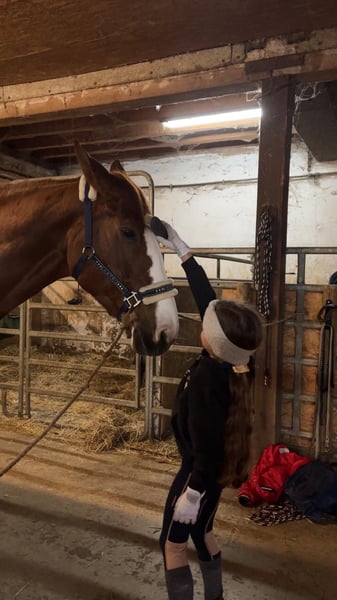 🌸 Fleur – Charming Chestnut Mare with Heart, Talent, and Kid-Friendly Temperament 🌸 We are offering Fleur, a very special 8-year-old chestnut mare, for sale. She impresses not only with her talent but especially with her exceptionally sweet nature. Fleur is a completely reliable partner in handling, and she consistently remains calm, friendly, and well-behaved, especially in contact with children. She has already competed successfully in E-level show jumping with children, demonstrating ambition, composure, and enjoyment in her work. In dressage, Fleur possesses all the qualities one could wish for: she has already competed up to A* level and shows great potential for further tests. She has won several young rider competitions with children, earning top scores up to 8.0, highlighting her rideability and reliability. Beyond her sporting versatility, Fleur scores with her straightforward nature: - Easy to load - Well-behaved in daily handling - People-oriented, affectionate, and attentive Fleur is a mare you simply have to fall in love with. She captivates with her gentle demeanor, stunning exterior, and honest character. Whether as a children's or junior horse, a reliable partner, or a loving leisure and sport horse – Fleur is a true heart horse that brings joy to her owner every day. A current health certificate is also available! 📍 Only to caring and loving hands 📩 Serious inquiries are welcome via message.