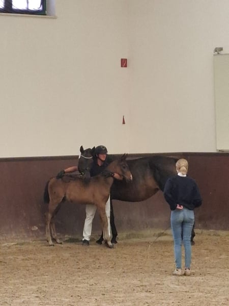 "Calle" steht ab sofort zum Verkauf, da wir leider unseren Bestand verkleinern müssen. Er ist am 17. April 2025 geboren und stammt ab von Carlo (Chacco-Blue x Capriol) x Canturat (Canturo x Prinz Pilot). Demzufolge ein vielversprechender Nachwuchs für den Springsport! Calle ist ein sehr langbeiniges, agiles und selbstbewusstes Fohlen. Aufgrund seiner großen Galoppade sowie seines Mutes kann ich ihn mir auch in der Vielseitigkeit zukünftig vorstellen. Er steht bei uns nur nachts in einer großen Box mit seiner Mutter, ansonsten stehen die beiden ganztägig auf einer Koppel mit anderen Artgenossen nebenan. Des Weiteren kann er das Fohlen-ABC, kennt den Schmied und ist dabei sehr artig. Der "kleine" Mann wird mal sehr groß, mindestens 170 cm Stockmaß, wenn nicht sogar in Richtung 180 cm. Also auch für große Reiter*innen interessant! Am besten wäre es, wenn er in bereits Jungpferde-erfahrene Hände kommt, da er wie schon erwähnt sehr selbstbewusst ist und manchmal eben etwas frech sein kann. Trotzdem liebt er Kuscheleinheiten und gekrauelt zu werden! Calle darf ab Oktober ausziehen und sein Leben mit Gleichaltrigen genießen. Ein Aufzuchtplatz hier in der Nähe ist bereits reserviert. Auf Wunsch kann dieser auch bei Kauf in Anspruch genommen werden. Diese Anzeige habe ich im Auftrag erstellt, also bei ernsthaftem Interesse bitte bei +49 176 30143418 melden!