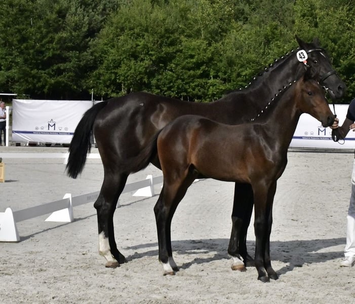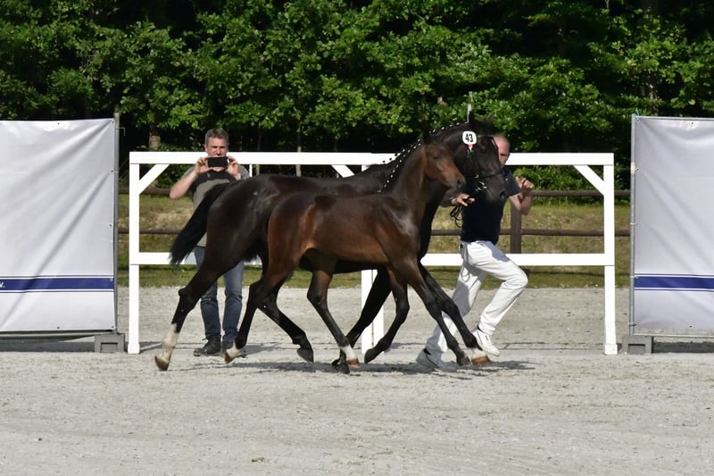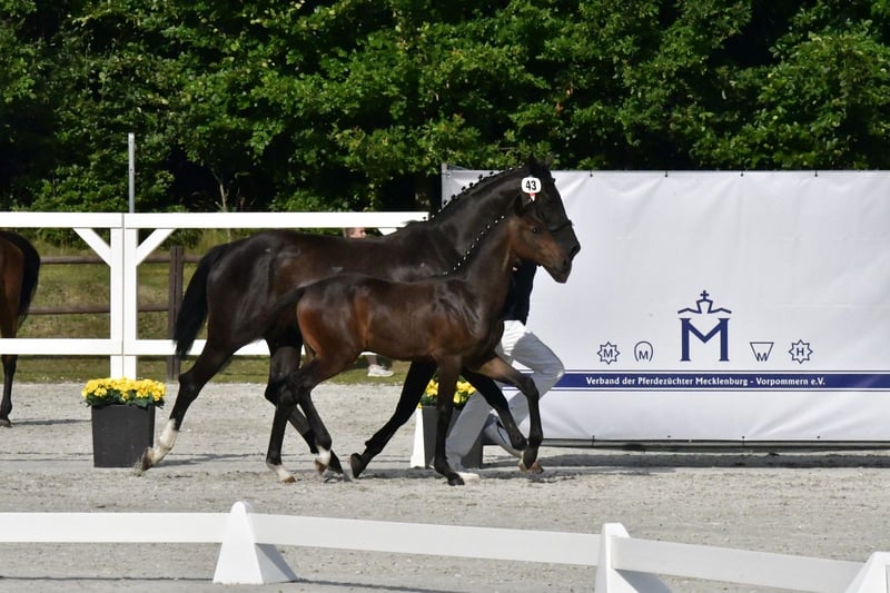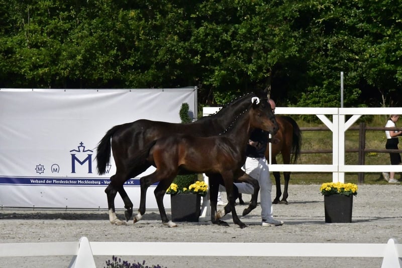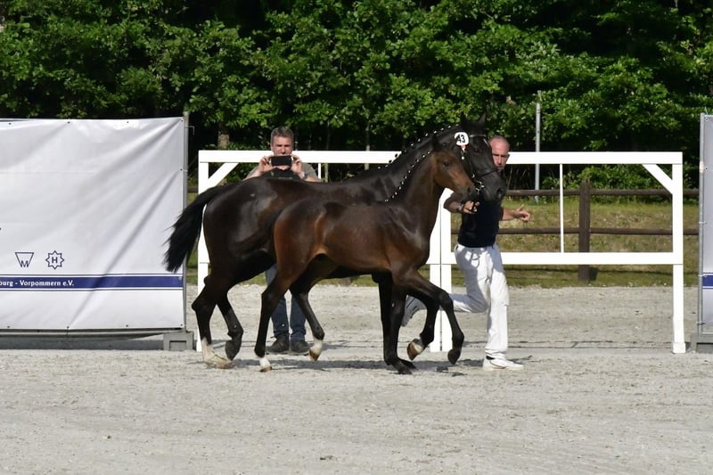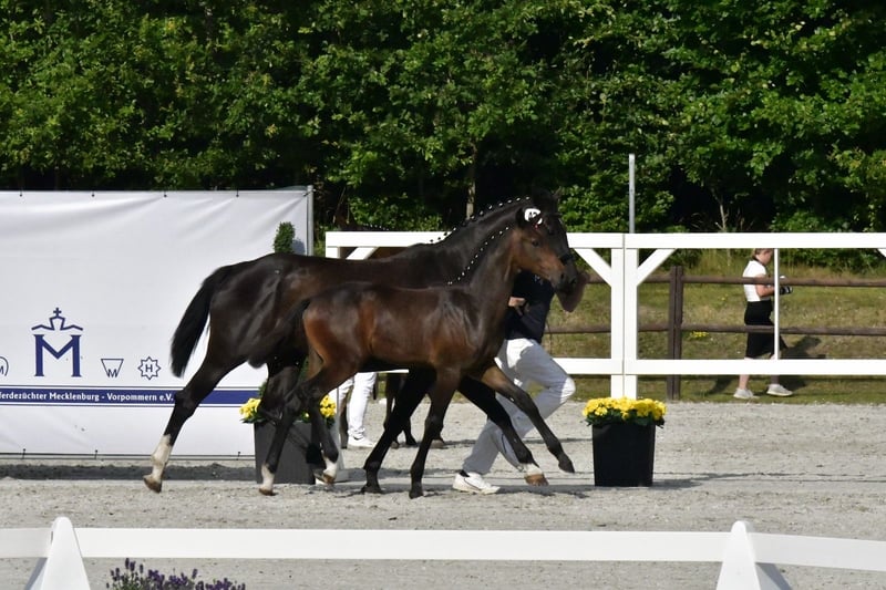 Wir verkaufen unser sehr schönes Hengstfohlen von Casallco x Diarado x Chacco Blue Er wurde Siegerhengst auf der Mecklenburger Elitefohlenschau bei den Springbetonten Hengsten. Sehr typvolles edles Fohlen mit bester Springgenetik und erfolgreicher Familie. Vollbruder Caspar 344 konnte in seiner ersten Turniersaison mehrfach Springpferdeprüfungen der Klasse A*\** gewinnen und sich mehrfach vorne platzieren. Mutter Daria Blue wurde wenig auf Turnier vorgestellt, konnte sich jedoch in L Springen platzieren und ist M gelaufen. Großmutter Chaccolina ist im Sport hocherfolgreich und mehrfach siegreich in Schweren Springen bis zur Klasse S***. Ebenfalls international bis 1,60m gelaufen. Bei der Familie sollte die sportliche Veranlagung für den hohen Sport gegeben und vorhanden sein. Wenn Interesse besteht, gerne melden. Videos sind verfügbar.