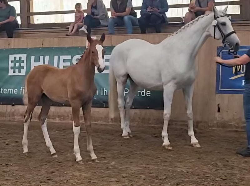 **Verkaufsanzeige: Mecklenburger Warmblut Hengst** Zum Verkauf steht ein vielversprechender Mecklenburger Warmblut Hengst, geboren im Jahr 2025. Dieser elegante Fuchs begeistert nicht nur durch sein auffälliges Erscheinungsbild, sondern auch durch sein Potenzial fürs Viereck. **Merkmale:** - Rasse: Mecklenburger Warmblut - Geschlecht: Hengst - Geburtsjahr: 2025 - Farbe: Fuchs - Eignung: Dressur Unser Hengst zeichnet sich durch seinen freundlichen Charakter aus. Mit seinem ausgeglichenen Temperament und seiner Bewegungsqualität ist er der ideale Partner für ambitionierte Reiter. Bei Interesse oder weiteren Fragen freuen wir uns über Ihre Nachricht. Gerne vereinbaren wir einen Besichtigungstermin, damit Sie sich von seinem Potenzial persönlich überzeugen können. Wir freuen uns auf Ihre Kontaktaufnahme!