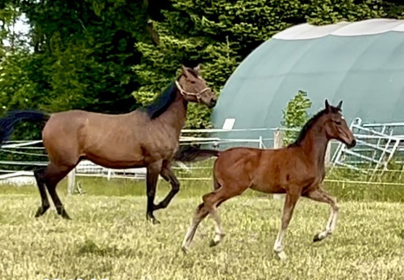 Zu verkaufen ist ein Hengstfohlen aus 02/25 von Destacado FRH aus einer Areion xx- Lagunas xx- Marduk xx- Mutter. Der kleine Hengst ist sehr gut erzogen, halfterführig und schmiedefromm. Er ist ausgestattet mit drei sehr guten Grundgangarten und einer enormen Springfreude, die er ganz ungefragt bei Gelegenheit zur Schau stellt. Er ist ausgezeichnet mit der Elitefohlenprämie des Mecklenburger Pferdezuchtverbandes bei den dressurbetont gezogenen Hengsten. Der Vater Destacado FRH ist sporterfolgreich unter Mathias A. Rath bis zum Grand Prix. Aktuell ist er im Olympiakader nominiert. Er vererbt eine sehr hohe Rittigkeit, große Linien und eine sehr gute Arbeitseinstellung. Selbst leistungsorientiert dressurbetont durchgezogen, hat Destacado FRH in seiner HLP viel Vermögen und Talent am Sprung bewiesen. Die Mutter ist eine im Galopprennsport geprüfte Englische Vollblutstute von Championvater Areion xx. In ihrem Pedigree finden sich bekannte und begehrte Vollblüter wie Kaiseradler xx und Literat xx. Sie bringt den Adel, die Härte und den Ehrgeiz mit. Gezogen ist dieser ausdrucksstarke, immer schöne Halbblüter für den Vielseitigkeitssport. Bei entsprechender Förderung stehen ihm ganz sicher alle Türen offen.