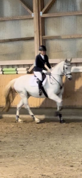 Loui è un castrone Mecklenburg con ottime qualità nel salto. Prima di acquistarlo, è stato posizionato in una classe più bassa. Grazie a lui, ho ripreso a saltare e ho imparato molto grazie alla sua compagnia. Dal punto di vista della dressage, era ancora abbastanza "verde", ma sta facendo grandi progressi. Ama le uscite in campagna. In gara, è completamente coraggioso e, soprattutto nel salto, è assolutamente affidabile. Negli ultimi 1,5 anni abbiamo partecipato a diverse competizioni. Tuttavia, io stesso non ho mai avuto il coraggio di affrontare più di un salto E; Loui è molto più capace di molto di più… In dressage, deve ancora migliorare nella costanza dell'imboccatura, ma si impegna molto in generale. A causa di problemi di salute, sono costretto a separarmi da lui, cosa che mi rattrista moltissimo. Per questo, il posto viene prima del prezzo. Voglio che trovi una nuova famiglia che si prenda davvero cura di lui e gli voglia bene.