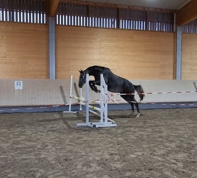 Verkaufe Mecklenburger Warmblut Wallach – Ein vielversprechendes Springpferd, Vielseitigkeitspferd oder Partner für den gehobenen Freizeitbereich. Zum Verkauf steht ein eleganter blutgeprägter Mecklenburger Warmblut Wallach, geboren im Jahr 2023. Dieser hübsche Schimmel überzeugt durch sein sehr freundliches Wesen und seine beeindruckende Erscheinung. Mit einem Stockmaß von 168 cm bietet er die ideale Größe für ambitionierte Reiter, die ein vielseitiges Springpferd, Vielseitigkeitspferd oder gehobenes Freizeitpferd für die Zukunft suchen. Der junge Wallach zeigt bereits viel Talent im Springen und verfügt über eine vielversprechende Grundausbildung (Bodenarbeit, Longiert, Freispringen). Seine Beweglichkeit, sein Springvermögen und seine Lernbereitschaft und sein liebenswerter Charakter machen ihn zu einem idealen Partner für Sport und Freizeit. Seine Mutter hat 9er Noten Freispringen Stutenprüfung. Der Pferd ist gesund, regelmäßig untersucht und steht bereit für eine neue Herausforderung. ER ist bei uns i n der Herde aufgewachsen und lebt in einem Aktivstall mit 20 Pferden. Kennt Futterautomat, Schmied, Putzen, etc. Bei Interesse oder für weitere Informationen stehe ich gerne zur Verfügung. Kontaktieren Sie mich, um dieses vielversprechende Jungpferd kennenzulernen! Aktuelle Röntgenbilder vorhanden von 12/2025. Kastriert 12/2025