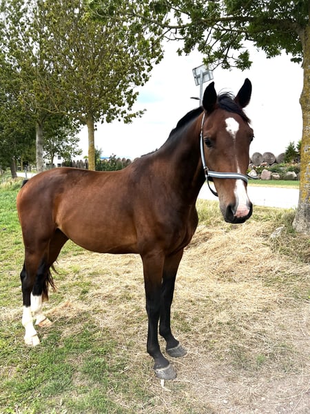 Wir bieten unseren nun 3,5 jährigen Wallach zum Kauf an. Er zeigt sich im Umgang aufmerksam und sensibel. Er lässt sich an der Longe arbeiten und ist nun ca. 6 Wochen unter dem Sattel. Er lässt sich problemlos auf dem Reitplatz alleine und mit anderen Pferden in allen drei Gangarten reiten. Auch erste Runden im Gelände (in der Gruppe) meisterte er artig. Er zeigt jetzt schon einen tollen Schritt und auch einen schwungvollen Trab und Galopp. Er ist bei uns Zuhause aufgewachsen, täglicher Kontakt zu Menschen ist gegeben. Er ist in einer kleinen Hengst Herde groß geworden (Offenstall Haltung im Winter und große Koppel im Sommer). Standort 17406 Usedom. Videos per WhatsApp. Alien Hagemann 0172/5905659
