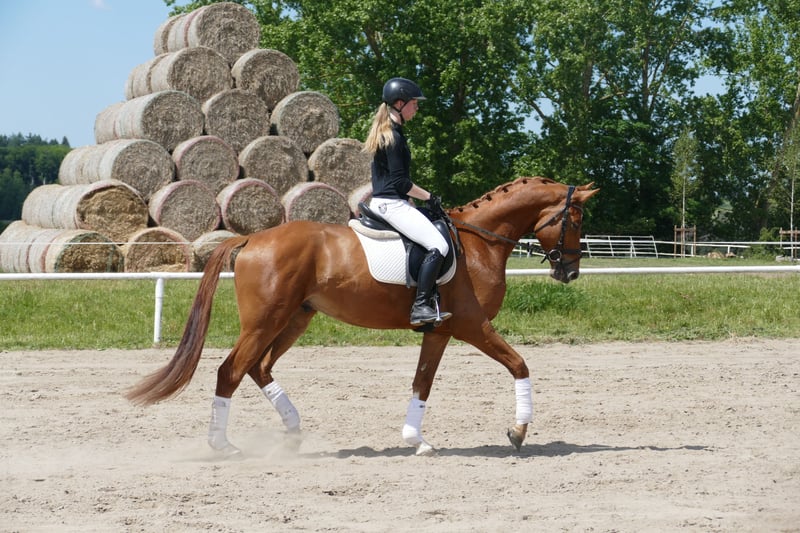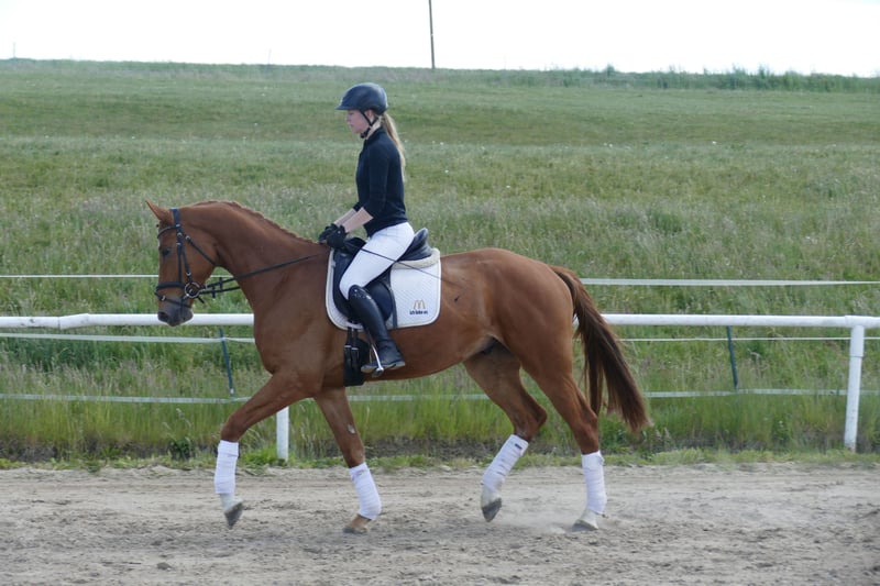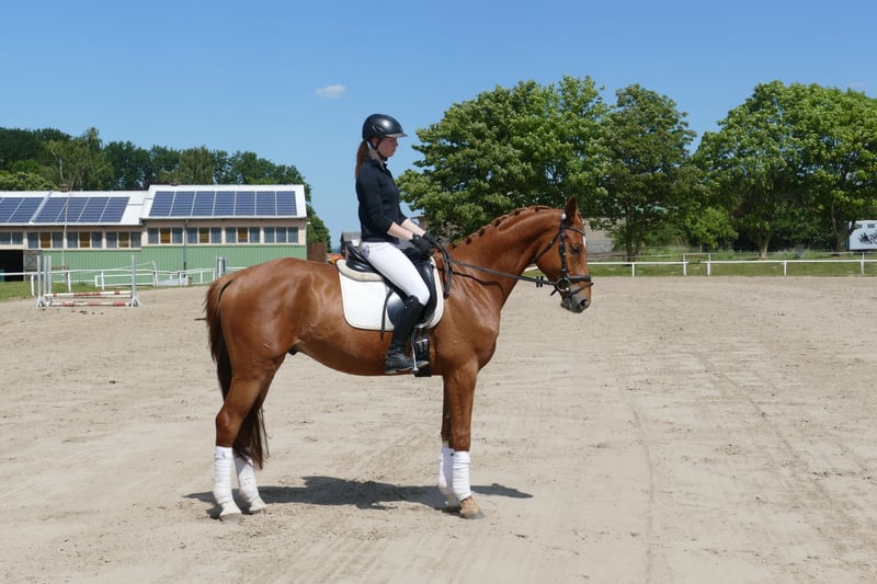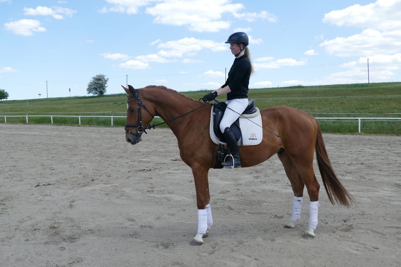 Memory: - Langbeiniger eleganter Reitpferdetyp - Drei gut zu sitzende Grundgangarten - Mit vielseitiger Ausbildungsperspektive - Memory ist im Gestüt Ganschow geboren, aufgewachsen und schonend ausgebildet