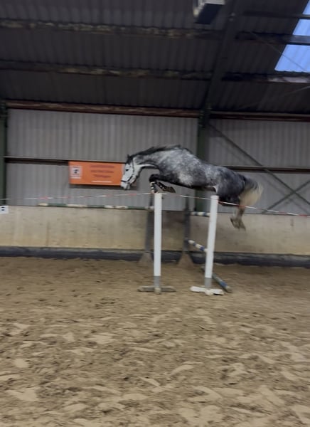 Verkaufe 6 jährigen Springpferd Wallach, Schimmel, 1,78 m. Abstammung von Hickstead White x Levkoi (Levisto) . Springpferde L platziert. Von Jugendlicher geritten. Einfach zu reiten. Springt immer ab, auch bei unpassender Distanz. Potenzial für den großen Sport definitiv vorhanden. Schmiedefromm (bisher Barhuf),. Bisher Offenstall gewohnt.