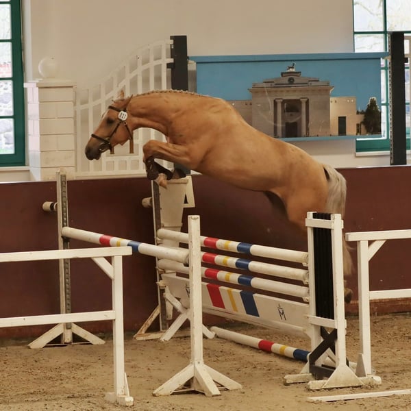 Mecklenburg Warmblood Gelding – An Impressive Show Jumping Partner! For sale is a stunning Palomino gelding, born in 2019. Standing at 16.1 hh, he combines elegance and athleticism in perfect harmony. This charming Mecklenburg Warmblood is ideal for ambitious show jumpers or leisure riders seeking a talented partner. His strong jumping ability, combined with a friendly temperament and good basic gaits, makes him a versatile companion. If interested, we look forward to hearing from you to discuss further details and arrange a viewing.