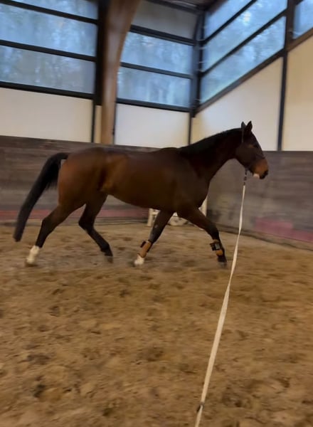 Schweren Herzens in liebevolle Hände zu vergeben, und auch nur wenn alles passt! Nach langem Überlegen habe ich mich schweren Herzens dazu entschlossen, für mein Riesenbaby Aris ein neues, liebevolles Zuhause zu suchen. Aris ist ein Mecklenburger-Wallach, geboren am 21.03.2018, mit einem Stockmaß von 1,73 cm Ich habe ihn selbst gezogen – daher liegt mir sein weiteres Wohlergehen besonders am Herzen. Abstammung & Potenzial • Vater: Arko Junior • Mutter: Pinocchio – Pilot Aris besitzt hervorragende Grundgangarten, viel Potenzial und eine erstklassige Abstammung, die sicher auch für die Zukunft vielversprechend ist. Er befindet sich aktuell noch im Profiberitt bis zum 1.01 und wird dort weiter im Springen gefördert und ausgebilde Eine kleine Akku wurde am 15.12 gemacht und ist ohne Befund super schönes Pferd, Gesund mit stabilen Beinen wie man sich das wünscht meinte der Tierarzt! Aris befindet sich im Moment auf auf ein Solides A Niveau! Charakter & Umgang Aris ist im Umgang ein absoluter Schatz – freundlich, menschenbezogen und sehr verschmust. Er liebt Aufmerksamkeit, steht gern im Mittelpunkt und bringt mit seiner charmanten Art jeden zum Lächeln – ein echter Clown im positiven Sinne. Beim Reiten zeigt er viel Schwung und Energie, weshalb er einen erfahrenen Reiter benötigt, der ihn gezielt unterstützt und ihm Sicherheit gibt. Im täglichen Umgang (Hufschmied, Tierarzt, Entwurmung usw.) ist er absolut brav und unkompliziert. Ausbildung & Haltung • Schonend angeritten mit 4 Jahren • Bodenarbeit, Doppellonge, Fahren vom Boden, Dualgassen, Schrecktraining • Wird überwiegend auf dem Platz und im Gelände (in der Gruppe) geritten • Robust aufgewachsen in gemischter Herde: im Winter auf 3 ha, im Sommer auf 11 ha Weide • Kastriert am 03.09.2020 Aris ist kein Anfängerpferd, aber für einen ambitionierten, einfühlsamen Reiter ein treuer Partner mit großem Potenzial. Gesundheit & Pflege • Barhuf, regelmäßiger Schmied alle 8 Wochen • Influenza & Tetanus geimpft • Zahnbehandlung im Mai 2025 • Osteopathisch durchgecheckt im August 2025 • Keine bekannten Erkrankungen oder Verletzungen (nur übliche Weideblessuren) Einsatz & Wunschplatz Ich verkaufe Aris als Freizeitpferd, da er bei mir auch ausschließlich so eingesetzt wurde. Mit weiterer Förderung wäre aber sicher auch der Start auf kleineren Turnieren denkbar. Ich wünsche mir für ihn ein Zuhause mit viel Auslauf, Weidegang und Herz, wo er nicht als Sportgerät gesehen wird, sondern als Partner und Freund. Ein Kennenlernen und Probereiten (auf eigene Gefahr) ist nach Absprache selbstverständlich möglich. ❌ Kein Notverkauf, nicht zur Verfügung! ☎️ 01520 3643167 Liebe Grüße Anja