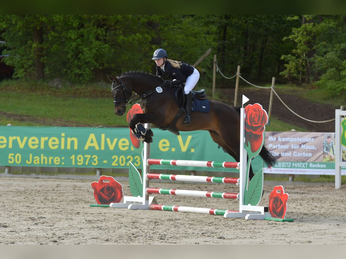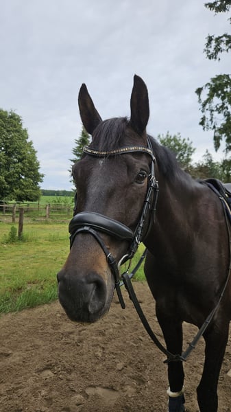 Lennox ist 8 Jahre alt, ca. 1,72 m groß. Er wird schweren Herzens aufgrund von zeitlichen Kapazitäten abgegeben. Er ist ein sehr freundliches Pferd, das stets gefallen möchte. Dabei benötigt er jedoch die Sicherheit einer ruhigen und souveränen Reiterin, weshalb er nicht für Anfänger geeignet ist. Aktuell wird er von mir (24), sowie von meiner Schwester (16) geritten. Trotz ihrer eher unsicheren Reitweise kommt sie im dressurmäßigen Arbeiten auf dem Platz sehr gut mit ihm zurecht. Ein Mutter-Tochter-Gespann könnten wir uns daher sehr gut für ihn vorstellen. Lennox ist sowohl in der Dressur als auch im Springen auf A-Niveau ausgebildet. Erste Erfahrungen im Gelände- bzw. Geländespringen konnte er ebenfalls sammeln, benötigt hier jedoch ebenfalls eine sichere Reiterin . Aufgrund fehlender Zeit wurde er bisher nur sporadisch auf Turnieren vorgestellt, zeigte sich dort aber souverän. Lennox ist ein Pferd, mit einem sehr liebenswerten Charakter. Derzeit steht er in einem Offenstall, was ihm sehr gut gefällt. Er sollte auch zukünftig einen Stall haben, indem er zumindest tagsüber draußen stehen kann. Außerdem kennt er den Schmied, ist regelmäßig geimpft, wurde zuletzt im November ostheopatisch behandelt, kennt Hängerfahren und auch Ausreiten. Lennox hat einen Bockhuf, der ihn aber in keiner Weise beeinträchtigt. Aufgrund von Aufgabe des Reitsports kann Lennox zzgl. zum Kaufpreis mit seinem Zubehör erworben werden (Dressursattel, Springsattel, Trense etc.)