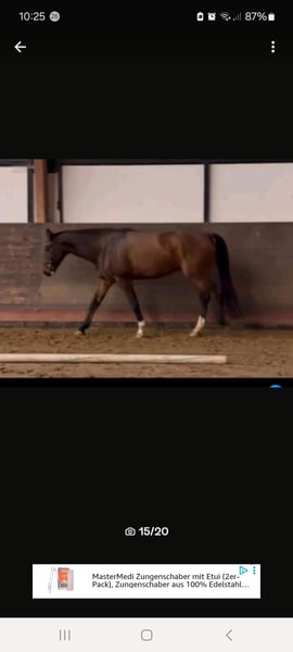 Schweren Herzens in liebevolle Hände zu vergeben, und auch nur wenn alles passt! Nach langem Überlegen habe ich mich schweren Herzens dazu entschlossen, für mein Riesenbaby Aris ein neues, liebevolles Zuhause zu suchen. Aris ist ein Mecklenburger-Wallach, geboren am 21.03.2018, mit einem Stockmaß von 1,73 cm Ich habe ihn selbst gezogen – daher liegt mir sein weiteres Wohlergehen besonders am Herzen. Abstammung & Potenzial • Vater: Arko Junior • Mutter: Pinocchio – Pilot Aris besitzt hervorragende Grundgangarten, viel Potenzial und eine erstklassige Abstammung, die sicher auch für die Zukunft vielversprechend ist. Er befindet sich aktuell noch im Profiberitt bis zum 1.01 und wird dort weiter im Springen gefördert und ausgebilde Eine kleine Akku wurde am 15.12 gemacht und ist ohne Befund super schönes Pferd, Gesund mit stabilen Beinen wie man sich das wünscht meinte der Tierarzt! Aris befindet sich im Moment auf auf ein Solides A Niveau! Charakter & Umgang Aris ist im Umgang ein absoluter Schatz – freundlich, menschenbezogen und sehr verschmust. Er liebt Aufmerksamkeit, steht gern im Mittelpunkt und bringt mit seiner charmanten Art jeden zum Lächeln – ein echter Clown im positiven Sinne. Beim Reiten zeigt er viel Schwung und Energie, weshalb er einen erfahrenen Reiter benötigt, der ihn gezielt unterstützt und ihm Sicherheit gibt. Im täglichen Umgang (Hufschmied, Tierarzt, Entwurmung usw.) ist er absolut brav und unkompliziert. Ausbildung & Haltung • Schonend angeritten mit 4 Jahren • Bodenarbeit, Doppellonge, Fahren vom Boden, Dualgassen, Schrecktraining • Wird überwiegend auf dem Platz und im Gelände (in der Gruppe) geritten • Robust aufgewachsen in gemischter Herde: im Winter auf 3 ha, im Sommer auf 11 ha Weide • Kastriert am 03.09.2020 Aris ist kein Anfängerpferd, aber für einen ambitionierten, einfühlsamen Reiter ein treuer Partner mit großem Potenzial. Gesundheit & Pflege • Barhuf, regelmäßiger Schmied alle 8 Wochen • Influenza & Tetanus geimpft • Zahnbehandlung im Mai 2025 • Osteopathisch durchgecheckt im August 2025 • Keine bekannten Erkrankungen oder Verletzungen (nur übliche Weideblessuren) Einsatz & Wunschplatz Ich verkaufe Aris als Freizeitpferd, da er bei mir auch ausschließlich so eingesetzt wurde. Mit weiterer Förderung wäre aber sicher auch der Start auf kleineren Turnieren denkbar. Ich wünsche mir für ihn ein Zuhause mit viel Auslauf, Weidegang und Herz, wo er nicht als Sportgerät gesehen wird, sondern als Partner und Freund. Ein Kennenlernen und Probereiten (auf eigene Gefahr) ist nach Absprache selbstverständlich möglich. ❌ Kein Notverkauf, nicht zur Verfügung! ☎️ 01520 3643167 Liebe Grüße Anja