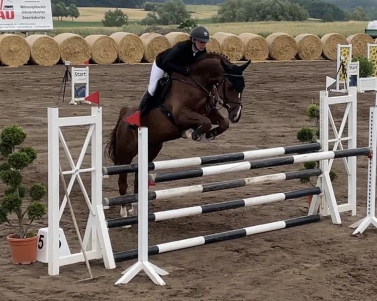 Here I am offering a promising gelding with an excellent pedigree for sale. A very well-behaved gelding that brings great joy in daily work. Whether jumping or dressage, he always aims to please. Currently placed in medium level classes and has competed successfully in M** classes. A 30€ trial riding fee applies, which will be deducted from the purchase price if the sale goes through.
