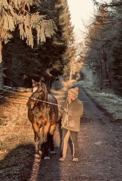 Piękna stara klacz Oldenburska od Ecksteina, używana zarówno w zaprzegu, jak i pod siodłem.