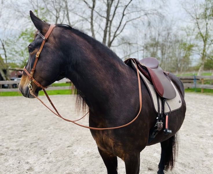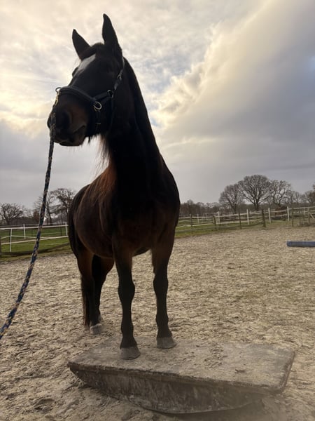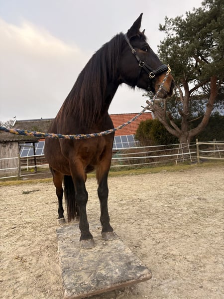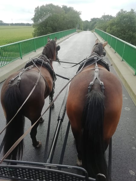 Zum Verkauf steht unsere hübsche Stute Lotte, geboren im Mai 2019, mit einem Stockmaß von ca. 157 cm. Sie ist eine Alt-Oldenburger/Ostfriesen Vater ist Eckstein und Muttervater Don mit vollen Papieren. Lotte hat ein solides Fundament, ein gutes Exterieur und klaren Charakter und wurde beim Vorbesitzer bis Ende 2024 ein- und zweispännig gefahren und sowohl auf dem Reitplatz als auch im Gelände geritten. Bei mir ist sie seit Januar 2025 und aufgrund von Zeitmangel nicht im Training ( Kleinkind und Selbstständigkeit ), kennt jedoch die Arbeit und ist ein ungeschliffener Diamant der geform werden möchte. Sobald das Wetter es wieder zulässt, wird Lotte mit professioneller Unterstützung wieder unter dem Sattel angeschoben und der Preis wird angepasst. Gesundheitlich ist Lotte bestens versorgt: * Hufe werden alle 4-6 Wochen regelmäßig bearbeitet * Regelmäßig geimpft und entwurmt * Regelmäßig osteopathisch behandelt * Zähne wurden zuletzt im März 2025 gemacht * Verladefromm Lotte lebt aktuell im Offenstall und von ca. April – Oktober auf einem Paddocktrail mit begrenztem Weidegang. Lotte gehört zu den eher leichtfuttrigen Pferden und ist hier in der Herde die Chefin, Sie ordnet sich in einer neuen Herde jedoch auch unter. Wenn jemand anderes der Chef ist. Sie wird nicht als Anfängerpferd abgegeben. Lotte braucht eine klare, ruhige und konsequente Führung im täglichen Umgang, dann zeigt sie sich ehrlich und arbeitswillig und ist sehr fein in der Kommunikation. Der Verkauf erfolgt ausschließlich aufgrund von Zeitmangel und Lotte ist zu Schade und jung zum herum stehen - es handelt sich nicht um einen Notverkauf. Ein ausführliches Kennenlernen ist ausdrücklich erwünscht, denn wir wünschen uns einen passenden Menschen, der ihr gerecht wird. Bei ernsthaftem Interesse freuen wir uns über eine Nachricht mit kurzer Darstellung des zukünftigen Zuhauses und ein Persönliches kennenlernen. Der Preis ist verhandelbar, jedoch wird diese tolle Stute nicht unter Wert verkauft. Videos vom Fahren sind vorhanden.
