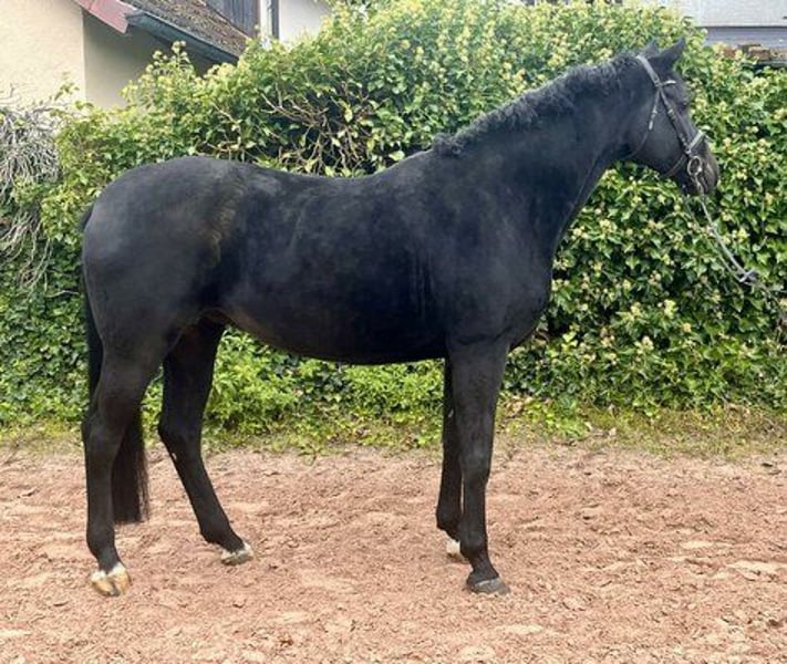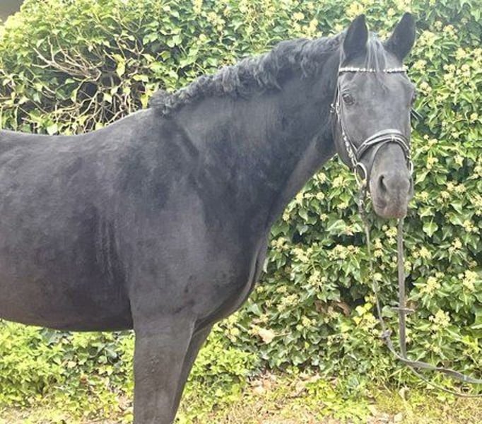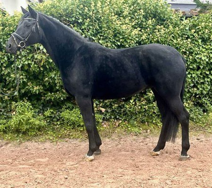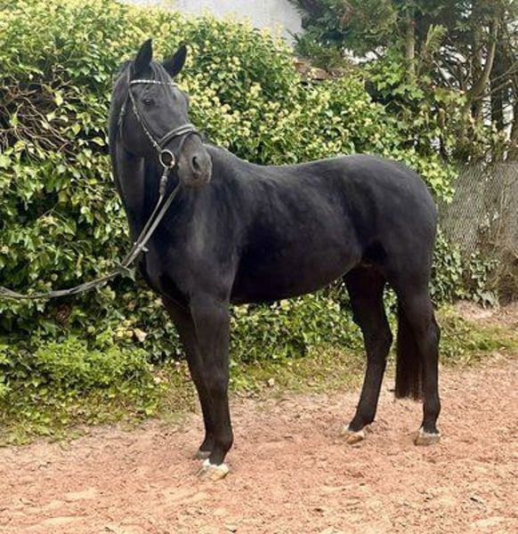 Sandra – a wonderfully sweet mare with excellent conformation! Sandra is a stunning and noble mare, born in 2015, standing approximately 16.1 hands. She is not only very elegant and an eye-catcher but also an outstanding character. Always easy to handle, calm, steady, and composed, with excellent conformation! A well-built, absolutely correct mare with a beautiful and noble head. Sandra is very sweet, human-oriented, and eager to please. She is easy and very pleasant to ride, moves softly through the back, is a reliable partner, and has fantastic conformation – especially her canter is simply a dream. She is familiar with small jumps under saddle but has not been extensively trained in jumping. Sandra is regularly vaccinated and dewormed. She knows lunging, free jumping, groundwork, work in the arena and on the outdoor riding area, as well as long-distance trail riding – whether in a group or alone. She is a trustworthy partner and also suitable for breeding. Overall, a very special horse with which you will definitely have a unique leisure and/or sport partner! Her pedigree is also impressive: Sire: Fürstenball by Fürst Heinrich Dam: by Don Schufro out of Donnerhall Price: €8,500. She is currently being introduced to the arena for the first time with us and is very cool about it. She is located alongside other horses in 96242 Sonnefeld. Transport can be arranged at the buyer’s expense.