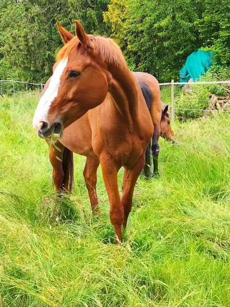 Ofrezco mi yegua Oldenburger de 10 años en manos muy experimentadas. Para mí, encontrar un lugar adecuado es mucho más importante que el precio. Selma proviene de una buena línea de sangre (Self Made x Londonderry) y tiene un carácter muy claro y autónomo. Mide aproximadamente 1,77 m. No es especialmente sociable con las personas y requiere una conducción firme, tranquila y consistente. En situaciones de inseguridad o falta de claridad, puede mostrar resistencia en tierra, incluso llegando a morder. Por ello, es apta únicamente para jinetes muy experimentados que puedan entender y manejar este tipo de caballo. Bajo la silla, suele mostrarse mucho más cooperativa que en tierra. Es exigente y reacciona de manera sensible a su jinete. Si algo no le gusta, lo expresa principalmente a través de su lenguaje corporal o rechinando los dientes, pero no da coces ni se hace la muerta. Todo lo que proviene del jinete desde arriba suele ser más fácil para ella que el manejo en tierra. Actualmente, Selma no está en un programa de entrenamiento estructurado, por lo que sería recomendable un plan de recuperación personalizado según las ideas del nuevo propietario. En el campo, va muy bien, incluso sola. En entornos nuevos, generalmente es fácil de manejar; se puede viajar con ella sin problemas y se orienta más hacia su cuidador. La carga en el remolque depende del día: normalmente entra sin dificultad, aunque algunos días necesita más tiempo y una conducción clara. En la manada, es social y se sitúa en una posición intermedia (ni líder ni marginada). Está en la línea de delante en el grupo. A nivel médico, presenta una alteración en la zona cervical. Esto la hace no apta para la competición y debe ser trabajada con responsabilidad, adaptándose a sus capacidades y sin presiones de rendimiento. Además, siempre ha mostrado un ligero temblor, que no le afecta. Puedo explicar detalles en una conversación personal. Busco un lugar con alguien que tenga mucha experiencia, expectativas realistas y disfrute de un caballo de carácter fuerte. Precio: 3.000 € VB – prioridad a la calidad del lugar, no al precio. Me reservo el derecho de seleccionar cuidadosamente las consultas.