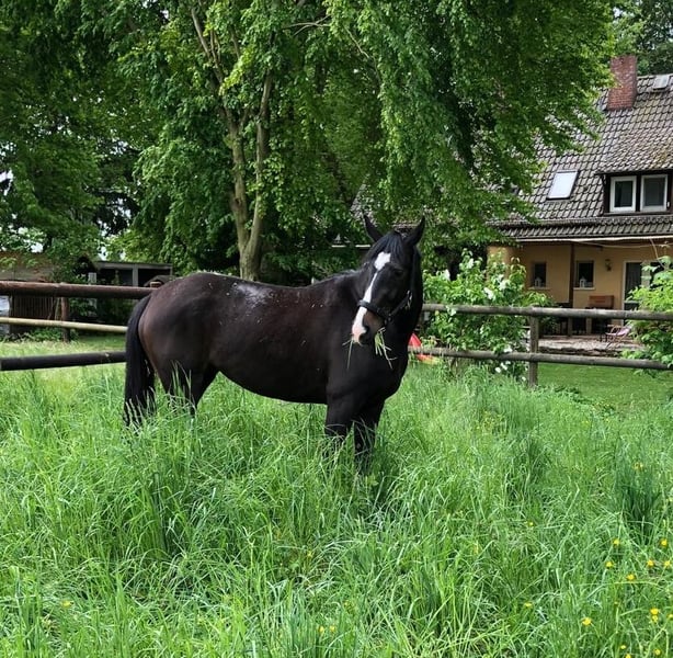 Wegen Aufgabe der Zucht steht diese bildschöne, schwarze Stute zum Verkauf „Lilly“, eine selbstgezogene und äußerst charmante Stute, hat bereits vier gesunde Fohlen zur Welt gebracht. Trächtigkeit und Geburt verliefen jedes Mal völlig unkompliziert und sie zeigt sich stets als fürsorgliche, zuverlässige Mutter. Eine ideale Zuchtstute für alle, die Wert auf Charakter, Gesundheit und mütterliche Verlässlichkeit legen. Platz vor Preis Auch Zurverfügungstellung möglich