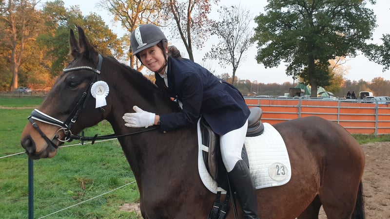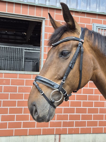 Skadi rose ist eine absolut brave & menschenbezogene, schmusige 11-jährige Oldenburger Stute. Ich habe sie 8-jährig gekauft & in den drei Jahren hat Sie niemals Unarten gezeigt, ist artig in der Halle, zuverlässig im Gelände und auf fremden Turnierplätzen so gelassen, als wäre sie dort zu Hause. Sie will immer gefallen, ist fleißig, leicht in der Hand & bequem zu sitzen. Skadi hat einige A-Dressuren gewonnen/platziert und ich reite Schwerpunkt Dressur. Leider ist sie nicht immer konstant in Takt & Anlehnung, schließlich haben wir herausgefunden, dass die Ursache ein leichter Befund in der HWS ist. Man kann es behandeln, ist aber für mich keine Dauerlösung, daher passt es für mich leider nicht mehr. Ich wünsche mir für dieses liebenswerte, brave Pferd einen Platz, wo der Schwerpunkt auf Freizeit & Gelände liegt und man ihren verlässlichen, gutmütigen Charakter zu schätzen weiss. Sie macht auch gerne einen kleinen Sprung, ist schmiede- & verladefromm. Sie wurde immer im Offenstall gehalten , idealerweise hat sie auch zukünftig Auslauf & Gesellschaft. Kontaktanfragen ab 20:00 Uhr, eine vorherige Kontaktaufnahme ist aus beruflichen Gründen schwierig. Telefon: 0151 57438360