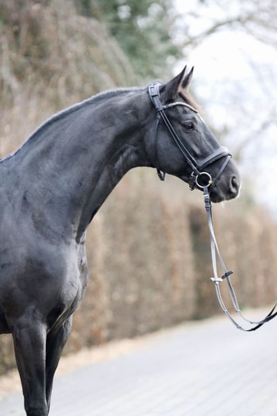 Sweety ist 11 Jahre alt und ca. 1,70 m groß. Diese beeindruckende Rappstute vereint alles, was man sich von einem modernen Dressurpferd wünscht: sportliche Qualität, ein exzellentes Interieur und eine Erscheinung, die auf jedem Platz zum Blickfang wird. Sie besticht durch ihre edle Silhouette, ihren ausdrucksstarken Typ und einen Auftritt, der sofort ins Auge fällt. Die Stute ist in M** siegreich und mehrfach platziert. Sie wurde bereits in der Klasse S vorgestellt und beherrscht die entsprechenden Lektionen sicher und zeigt hierbei eine natürliche Versammlungsbereitschaft. Sweety verfügt über genügend Talent und Einstellung, um ihren Weg im gehobenen Sport weiterzugehen. Ihre Bewegungen sind durchweg überzeugend : ein energischer, klarer Schritt, ein elastischer und schwungvoller Trab sowie eine sehr gute bergauf angelegte Galoppade mit Ausdruck und Qualität. Auch charakterlich ist sie ein absolutes Vorzeigepferd: super brav im Umgang, zuverlässig beim Schmied, Verladen und generell gesamten Handling. Ebenso brav und angenehm ist Sweety zu reiten. Sie arbeitet konzentriert, ist lektionssicher und bleibt stets gelassen und freundlich. Gerade wegen dieser Kombination aus Leistungsbereitschaft, Rittigkeit und Verlässlichkeit ist sie auch ideal für Junioren oder Reiter, die ein unkompliziertes, aber sportliches Pferd mit großer Perspektive suchen. Diese Rappstute vereint Schönheit, sportliche Klasse und einen Charakter, der im täglichen Arbeiten genauso überzeugt wie auf dem Turnier – ein Pferd, das jeden Tag Freude macht und gleichzeitig noch Perspektive für weitere Aufgaben mitbringt. Aktuelle Röntgenbilder (obB) und eine klinische AKU (obB) liegen vor.