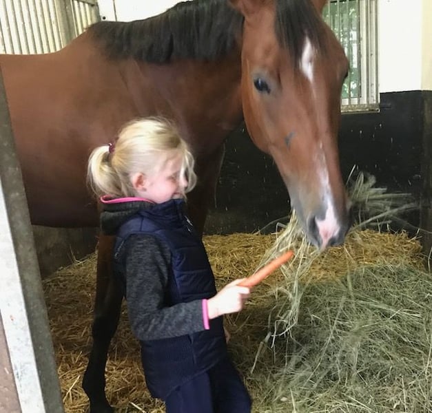 Z powodu zmniejszenia naszej hodowli sprzedajemy klacz OL w ciąży na 2026 rok. Klacz jest w naszym posiadaniu od prawie 5 lat i została włączona do hodowli z powodu kontuzji sportowej. Pochodzi z rodu Kateste. To będzie jej pierwsze źrebię. Klacz ma dobry i uczciwy charakter, nie ma żadnych złych nawyków i dobrze dogaduje się z innymi końmi, zna boks i 24-godzinne pastwisko. Jest w ciąży z DSP Sir Graditz (Sezuan-Sir Donnerhall I).