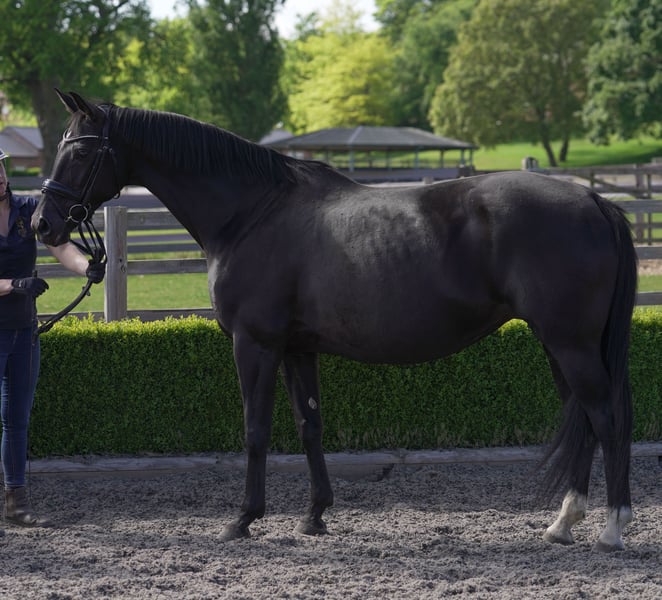MSJ Tia Nova es una impresionante yegua de cría negra con experiencia, proveniente de la línea materna Rudilore (estrechamente relacionada con el semental de doma mundial número 1, Rubin Royal). Su linaje incluye a Negro x Donnerhall, lo que la sitúa entre las mejores líneas clásicas de doma de todos los tiempos. Nova es una yegua activa y de tipo impresionante, tiene un carácter amable para manejar y fue una yegua encantadora para montar antes de entrar en la cría. Ha sido una reproductora fácil y una madre cariñosa en muchas ocasiones, transmitiendo un gran carácter y movimiento a su descendencia, incluyendo a uno vendido a un jinete multideportivo olímpico. Tenemos grandes esperanzas para algunos de ellos, incluyendo al excepcional potro Vitalos de este año, que se retendrá, junto con otros hermanos mayores para continuar esta línea de excelentes caballos de monta. Nova estará disponible tras el destete de su actual potro, pero mientras tanto, a costa del comprador, se puede acceder a la inseminación con el semental de su elección. Es fácil en un grupo y para manejar, lo que la hace adecuada para una variedad de nuevos hogares, incluyendo criadores menos experimentados o nuevos, pero también sería una excelente adición a un criadero profesional.