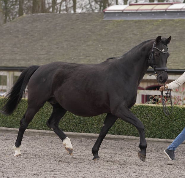 MSJ Tia Nova ist eine atemberaubende schwarze, erfahrene Zuchtstute aus der Rudilore-Stammlinie (eng verwandt mit dem weltbesten Dressurhengst Rubin Royal). Sie stammt von Negro x Donnerhall ab und gehört zu den besten klassischen Dressurlinien aller Zeiten. Nova ist eine aktive Bewegerin und ein beeindruckender Typ. Sie hat einen freundlichen Charakter und war eine wunderbare Stute zum Reiten, bevor sie in die Zucht ging. Sie war eine unkomplizierte Zuchstute und eine liebevolle Mutter, die bereits viele Fohlen zur Welt gebracht hat. Sie gibt ihren Nachkommen einen großartigen Charakter und Bewegungsablauf mit, darunter eines, das an einen mehrfachen Olympiareiter verkauft wurde. Wir haben große Hoffnungen für einige ihrer Nachkommen, einschließlich des diesjährigen großartigen Vitalos-Hengstfohlens, das behalten wird, sowie andere ältere Geschwister, um diese Linie von hervorragenden Reitpferden fortzusetzen. Nova ist nach dem Absetzen ihres aktuellen Fohlens verfügbar, aber in der Zwischenzeit kann sie auf Kosten des Käufers für die Tierarztkosten und das Samenangebot erneut mit dem Hengst Ihrer Wahl besamt werden. Sie ist einfach im Herdenverband und im Umgang, was sie für eine Vielzahl von neuen Zuhause geeignet macht, einschließlich weniger erfahrener oder neuer Züchter, aber sie wäre auch eine hervorragende Ergänzung für einen professionellen Zuchtbetrieb.