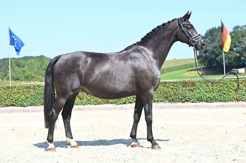 We offer our proven breeding mare Tausendschön, a daughter of the exceptional stallion Totilas, for sale. Tausendschön has already made a significant contribution to our breeding program: several quality foals – including those by Benicio, Secret, and Va Bene – have been born and successfully sold from her. One of her promising daughters will remain in our breeding program and continue this valuable line. Tausendschön is in foal for 2026 to St. Noblé (by Blue Hors St. Schufro - Sir Donnerhall). Tausendschön's grandmother Floristin by Florestan produced the successful Spotlight by Sir Donnerhall, who achieved PSG / Inter I in the USA and is a full brother to Tausendschön's mother Serendipity. This lineage combines rideability, reliability in breeding, and athletic quality. In daily handling, Tausendschön consistently demonstrates a kind, reliable, and balanced temperament. She is an exemplary mother mare, well integrated into the herd, and passes on calmness, strong type, and three very good basic gaits to her offspring. A special opportunity to acquire a character-strong and proven mare with a convincing pedigree for breeding or leisure. If interested, please feel free to contact us at 0151 / 42533347. Victoria Brüning