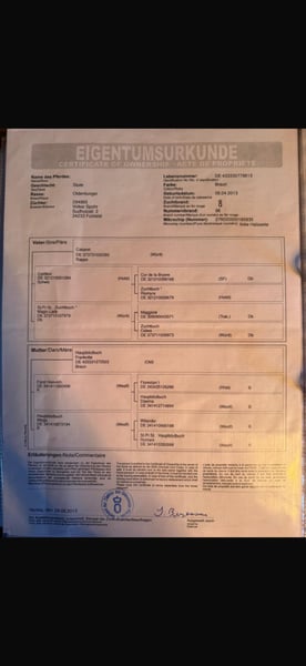 Yegua de cría especial con una genealogía muy buena, en busca de un nuevo hogar por pocas zanahorias. Cabaret x Fürst Heinrich Casablanca, a quien llamamos Blabla, busca un nuevo hogar de 5 estrellas. Tiene 13 años, aproximadamente 1,65 m y goza de buena salud. Hasta ahora ha tenido 4 maravillosos potros, 3 de los cuales están en mi posesión y pueden ser visitados. Lamentablemente, Blabla sufrió malas experiencias con las personas antes de nuestro tiempo juntos. Como resultado, tiene miedo de las personas. Sin embargo, nunca es malintencionada y es muy tranquila y obediente. Deseamos un hogar amoroso y comprensivo donde pueda vivir de manera adecuada a su naturaleza. Prioridad al bienestar, no al precio. Blabla puede ser visitada en nuestra finca en Estiria. Sus descendientes también están a la venta. Para más información, no dudes en contactarnos.