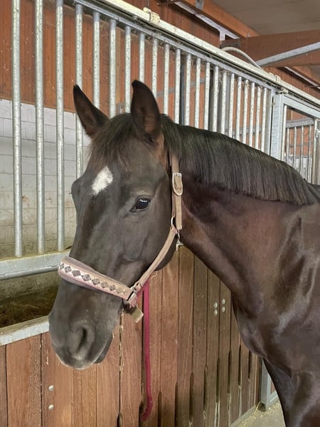 Lilly is a beautiful 14-year-old dark chestnut mare who is very people-oriented and friendly. She is very balanced and up for any fun. Lilly has no vices and is very well-behaved. She is shod in front, is farrier-friendly and loading-friendly, does not buck, and does not rear. In the past, Lilly has achieved many victories and placements up to the M** level. Currently, she is successful in L dressage and is therefore in top shape to ride immediately. She is absolutely reliable in lessons and also jumps series changes reliably. She has also been presented in show jumping up to the A** level at competitions. Additionally, she is a great partner for leisure, with whom you can have fun every day. Lilly does not have a current vet check as she has been in the owner's possession for 11 years and was purchased directly from the breeder back then. To spare Lilly from "riding tourism," we charge a fee of €25 for trial rides. This will, of course, be deducted from the purchase price.