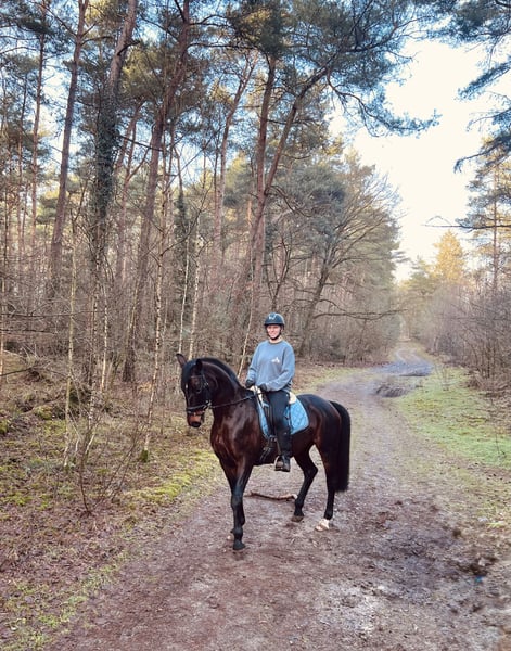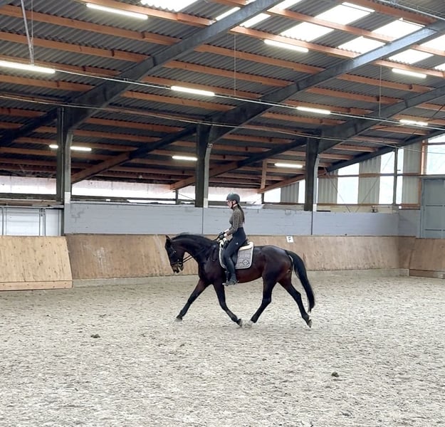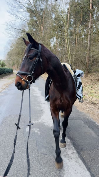 I am selling my 14-year-old mare Quin, who stands approximately 16.1 hh. She is a loyal, trusting, and sensitive soul that brings her rider a lot of joy and always aims to please. Quin previously had two foals and has only been under saddle for about four months. She performs exceptionally well for her training level: she is very rideable, shows no bad habits such as rearing or bucking, and impresses with excellent gaits, a lively rhythm, and a top pedigree by Donnerhall. Her health is in excellent condition – her teeth were recently checked by the veterinarian and confirmed to be in very good shape. The osteopath has also examined her, and everything is fine. Currently, she still needs to develop a bit more balance, but this improves steadily with continued training. She is easy to ride out alone in the field and is always reliable. Quin is very eager to learn, quickly accepts new things, and develops well when shown something. She also gets along well with dogs. She is very well-behaved at the farrier and behaves impeccably. Additionally, she is familiar with trucks and tractors and remains calm around them. In the herd, she ranks low and, in my opinion, gets along with almost any horse. Quin is accustomed to both pasture and stable life but feels especially comfortable in an open stable with a suitable partner. Since she still has some learning to do, I am looking for a loving owner who enjoys further training a wonderful horse and building a close partnership. A trial ride is possible for a fee of €25, which will be refunded upon purchase. Videos are available upon request. Serious inquiries are welcome via WhatsApp at +49 151 28103838. Please note: She will not be sold to riding schools or dealers!