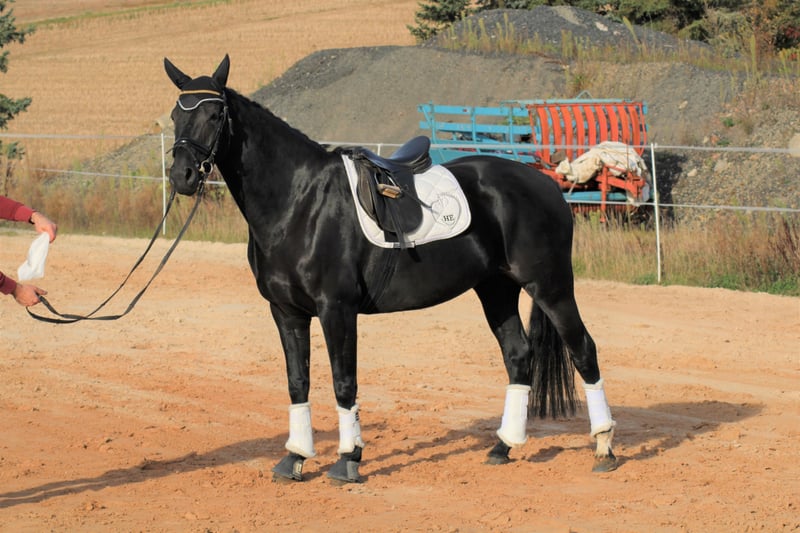 En raison de sa lignée exceptionnelle (la mère Ruthana est la pleine sœur de l'étalon Rodgau), de ses excellentes aptitudes au mouvement et de son gène noir, Tonja est une offre intéressante pour l'élevage ; elle a toujours été pleine. Sa force de mouvement et son bon caractère ont été transmis à sa descendance (qui peut être visitée chez nous). Le poulain hongre alezan est issu de Le Vivaldi, la jument noire de Grand Galaxy Win, l'année précédente elle a eu un superbe poulain étalon de So Perfekt et l'année dernière, elle a eu une magnifique pouliche de Zackery. Il n'y a également aucune objection à la former comme cheval de sport ou de loisir. La jument n'est pas montée, mais elle est parfaitement manipulée et en bonne santé. Nous souhaitons naturellement une excellente place. Pour toute question, je réponds volontiers par téléphone, mais de préférence lors d'un rendez-vous de visite en personne.