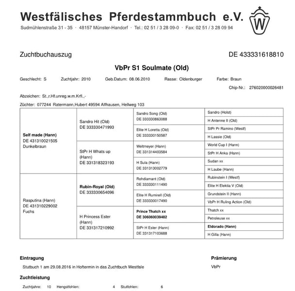 ufgrund der Reduzierung unseres Zuchtbestandes bieten wir diese außergewöhnliche Zuchtstute zum Verkauf an. Die Stute stammt aus einer hochinteressanten Dressurabstammung (Self made – Rubin Royal)und hat sich über viele Jahre als äußerst wertvolle und zuverlässige Zuchtstute bewiesen. Highlights: • bereits 10 hochwertige Fohlen gebracht • Nachkommen erfolgreich verkauft in mehrere europäische Länder sowie in die USA • Auch Helgstrand Dressage hat Nachwuchs dieser Stute erworben • Ihre Nachkommen überzeugen im Sport mit sehr guten Ergebnissen • hervorragende Muttereigenschaften • unkompliziert im täglichen Umgang • aktuell gesund und sofort besamungsbereit Eine ideale Gelegenheit für ambitionierte Züchter, die eine bewährte, leistungsstarke Mutterlinie suchen und direkt in die nächste Zuchtsaison starten möchten. Weitere Informationen gerne auf Anfrage.