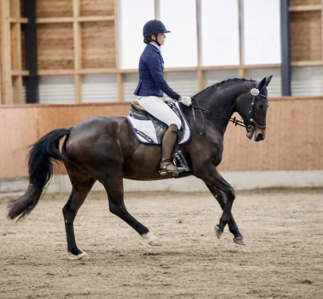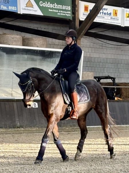 Romanze ist eine oldenburgische Dressurstute die aktuell bis L platziert ist und bis M vorgestellt wurde. Lektionssicher und bis zur Klasse S vom aller feinsten ausgebildet. Sie geht ins Gelände und macht auch einen kleinen Sprung auf E Niveau. Total unverbraucht und top fit. Aktuell steht sie im Offenstall, läuft Barhuf, verträgt sich mit anderen Pferden und ist auch Boxenhaltung gewöhnt. Sie ist eine absolute Verlasspartnerin auf L-M Niveau, spult ihr Programm ab und eignet sich daher perfekt als Lehrpferd. Auch der Stamm ist hochinteressant und bringt einige Erfolge mit sich. Gezogen aus einer direkten Weltmeyer Stute, vereint sie das Jahrhundertblut des Donnerhall mit Pik Bube I was jede Dressurfan aufhorchen lässt. Hengste wie Picasso, Weltregent, Brunello di Montalcino, Weltroyal, Ikon, Bombay Sapphire oder Summertime Blues entstamme der Familie der Delfina. Ein Halbbruder von Breitling W ist bis S erfolgreich. Anschauen nach Absprache möglich. Kein Reittourismus erwünscht. Videos können bei Interesse versendet werden. Nur in schätzende Hände aus zeitlichen Gründen zu verkaufen.