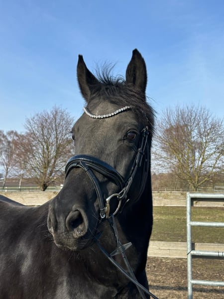Swarovski x Dunhill x Worldman Stute / Geb. 2008 / Rappe / 168cm Geritten bis A Dressur danach zur Zucht eingesetzt. In den letzten Jahren drei gesunde Stutfohlen von Morricone, Democracy und Dream Royal zur Welt gebracht. Fohlen aus dieser Stute sind sehr schick und haben gute Bewegungen. Nimmt gut auf und ist unkompliziert im abfohlen. Liebevoll geht sie mit ihren Fohlen um. Liebt die Herdenhaltung. Die Stute ist gesund und hat keine Unarten. Sie wird als Zuchtstute verkauft. Verkauf wegen Bestandsverkleinerung. Bitte per WhatsApp unter 01779736387 melden.