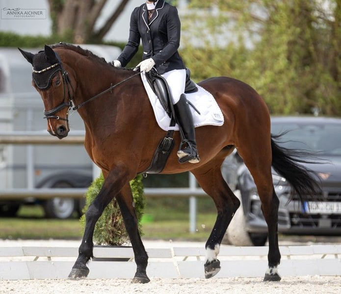 ***Lovely Mare with Protection Contract Only to Proven Best Hands*** ***Beginner Horse / Leisure Horse / Rideable Companion / Breeding Mare / Groundwork / Children's Horse*** First of all: I would only part with her if everything fits perfectly. Otherwise, this dream mare is guaranteed a lifetime place with me. Dealers or dubious inquiries have no chance here! I would only let my loving mare Queenie go to the very best hands with a protection contract and right of first refusal. This is absolutely not a forced sale! For purely personal reasons (unacceptable conditions in the current stable, such as criminals, extreme bullying, harassment, etc.), I have decided to find a new home for my mare and finally close this chapter. If she must move again at her age, it will only be to a place where she will truly be happy – with plenty of heart, (finally) pasture companions, and lots of quality time. Unfortunately, the stables in our area do not meet our expectations (more on that below), and I also sadly lack the time to engage with this very people-oriented and loving mare and mentally stimulate her. Therefore, I am looking for an absolute 5-star home. Queenie comes from a Schockemöhle breeding and stayed there until she was 6 years old. Therefore, she has fantastic papers to show. After that, she actively participated in high-level show jumping up to class M. I took her over when she was 13 years old and have only presented her in dressage up to class A due to her age. She is an absolutely experienced and seasoned mare with a fantastic work ethic. In competition, she has always shown herself to be strong-nerved, reliable, and secure – both in the course and on the flat (I was able to easily pass my riding badge with her). Therefore, she is still ideally suited as a teaching horse for children, teenagers, anxious riders, or re-starters. We have significantly reduced jumping (only poles now) due to her age-related arthrosis, and this should continue! We have placed more emphasis on dressage and groundwork instead. She is easy to ride, responsive, motivated, eager, and always gives her best to her person. She is a ribbon collector due to her rideability and knows movements up to the travers (of course, not in dressage manner – she is and remains a show jumper). Queenie has developed into a reliable horse in her old age, but she also wants to be engaged and handled properly. She should not be active in sports anymore, as she is no longer capable of enduring constant competitions or long trailer rides. I have observed that after extreme exertion, she struggles with an arthrosis flare-up (front right). We have always managed this with breaks and a careful program (diagnosis and x-rays available). However, she is still perfectly suited for leisure riding, occasional clinics, or small home competitions, dressage work, and relaxed rides in the countryside. We have not pursued trail training anymore. We went out more often in the first two years together and then gradually stopped because I am the typical arena and stable rider. She herself was not deeply relaxed outside, but always manageable and well-behaved – especially with a reliable second horse. She also enjoys groundwork. Here she shows herself to be very polite and respectful. We have successfully completed a few trails in hand. I wish for her a leisure rider who not only rides but also enjoys alternative activities. Currently, she is back in the rebuilding phase after an arthrosis flare-up (last competition was in May 2025). After that, she showed typical symptoms again: slight ticking in the front right. The veterinarian and veterinary clinic diagnosed an arthrosis flare-up. Tendons and ligaments are completely intact (x-rays and report available). This has now healed, and she is back in rebuilding training on the lunge. When getting to know her, we must consider the circumstances. Depending on the progress of the rebuilding training, riding may or may not be possible. Her character can best be described as: well-behaved, not mareish at all, but sensitive, people-oriented, cuddly, and sometimes insecure. She is very low in rank and can be easily integrated into any herd. She prefers to avoid trouble and has gotten along with every box or pasture neighbor so far. She loves children and has often participated in holiday programs. I wish for her a lifetime place with a protection contract – where she is appreciated, loved, and supported. She absolutely wants to have a job and not just "stand in the pasture." Herd living with plenty of movement would be ideal. I also wish for her to finally have friends! She is such a lovely and considerate mare who would feel most comfortable in a herd. She seeks the security of the herd and is a total cuddler. Unfortunately, I have never been able to provide her with that (due to "human" problems). Therefore, I wish for either an open stable or herd living with a box for the night. She is a good doer, so sufficient hay (preferably 24/7) is a must. I would like to include extensive and high-quality equipment (saddle, bridle, saddle pads, several blankets, etc.) with her. We can surely come to an agreement on this. Price: Negotiable – the right home is the priority! If you are interested, I look forward to a message and a personal meeting. I am happy to send more photos and videos upon request.