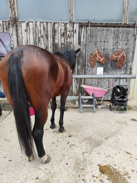 Douce jument avec contrat de protection, uniquement confiée à des personnes de confiance et expérimentées Cheval pour débutants / cheval de loisir / compagnon montable / jument de reproduction / travail à la longe / cheval pour enfants Avant tout : je ne me séparerai de cette jument de rêve que si tout est parfaitement en ordre. Sinon, cette magnifique jument aura une place à vie chez moi, garantie. Les demandes de marchands ou d’interlocuteurs peu sérieux n’ont aucune chance ici ! Je souhaite confier ma douce jument Queenie uniquement à des personnes de confiance, avec un contrat de protection et un droit de préemption. Il ne s’agit en aucun cas d’une vente d’urgence ! Pour des raisons purement personnelles (conditions insupportables dans l’écurie actuelle, telles que présence de délinquants, harcèlement extrême, brimades, etc.), j’ai décidé de lui chercher un nouveau foyer afin de tourner cette page une bonne fois pour toutes. Si elle doit changer d’environnement à son âge, ce sera uniquement pour un endroit où elle sera vraiment bien : avec beaucoup de cœur, un compagnon de pâture (enfin !) et beaucoup de temps de qualité. Malheureusement, les écuries de notre région ne répondent pas à nos attentes (voir plus bas), et je manque désormais de temps pour m’occuper de cette jument très proche de l’humain et affectueuse, et pour la stimuler mentalement. Je recherche donc un endroit 5 étoiles. Queenie provient d’une élevage Schockemöhle et y est restée jusqu’à ses 6 ans. Elle possède donc un papier de pedigree exceptionnel. Par la suite, elle a montré un grand talent en saut d’obstacles jusqu’à la classe M. Je l’ai prise en charge à 13 ans et l’ai uniquement présentée en dressage jusqu’à la classe A, en raison de son âge. C’est une jument très expérimentée en compétition, fiable et dotée d’une excellente attitude au travail. En concours, elle a toujours été calme, sûre d’elle et fiable – aussi bien en parcours qu’en dressage (j’ai facilement obtenu mon brevet d’équitation avec elle). Elle reste donc idéale comme cheval d’apprentissage pour enfants, adolescents, cavaliers débutants ou réintégrant la discipline. Nous avons réduit son entraînement en saut (seulement barres au sol) à cause de son âge et de son arthrose, et cela continuera ainsi. La dressage et le travail à la longe ont été renforcés. Elle se monte au petit doigt, est souple, motivée, engagée et donne toujours le meilleur pour son cavalier. Grâce à sa bonne éducation, elle est une véritable gagnante en termes de comportement, et connaît des exercices jusqu’à la travers. (Elle n’a pas de manières de dressage, elle reste une jument de saut). Au fil des ans, Queenie est devenue une partenaire fiable, mais elle a aussi besoin d’être occupée et bien manipulée. Elle ne doit plus participer activement au sport, car elle n’est plus apte à supporter des concours réguliers ou de longues sorties en van. J’ai constaté qu’après un effort intense, elle souffre d’un épisode d’arthrose (fève droite). Nous avons toujours géré cela avec des pauses et un programme de repos (diagnostic et radiographies disponibles). La blessure est maintenant guérie, et elle reprend doucement l’entraînement à la longe. Lors de la rencontre, il faudra prendre en compte cette situation. Selon l’évolution de son entraînement, il sera possible ou non de la monter. Son caractère peut se résumer ainsi : calme, pas du tout têtue, mais sensible, proche de l’humain, câline, parfois un peu hésitante. Elle est très dominante dans le groupe, mais s’intègre facilement à n’importe quel troupeau. Elle préfère éviter les conflits et s’entend avec tous ses compagnons de box ou de pâture. Elle adore les enfants et a souvent été utilisée lors de stages ou activités de vacances. Je souhaite pour elle un lieu de vie à vie avec contrat de protection – où elle sera appréciée, aimée et encouragée. Elle a besoin d’une tâche et ne veut pas simplement « paresser » dans un paddock. Une gestion en troupeau avec beaucoup de mouvement serait idéale. Je souhaite aussi qu’elle trouve enfin des amis ! C’est une jument très douce et attentive, qui se sentirait mieux en groupe. Elle recherche la sécurité du troupeau et est une véritable câline. Malheureusement, je n’ai jamais pu lui offrir cela (en raison de problèmes liés à l’humain). Je souhaite donc un box ou une gestion en troupeau avec box pour la nuit. Elle a un métabolisme sensible, donc du foin en quantité suffisante (idéalement 24/7) est indispensable. Je peux également fournir un équipement complet et de qualité (selle, bridon, couvertures, etc.). Nous pourrons sûrement nous mettre d’accord. Prix : à négocier – l’essentiel est de trouver le bon foyer ! Pour toute question ou pour organiser une rencontre, n’hésitez pas à me contacter. Je peux également envoyer d’autres photos et vidéos sur demande.