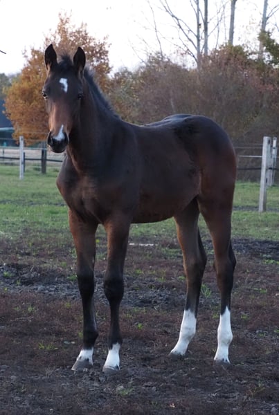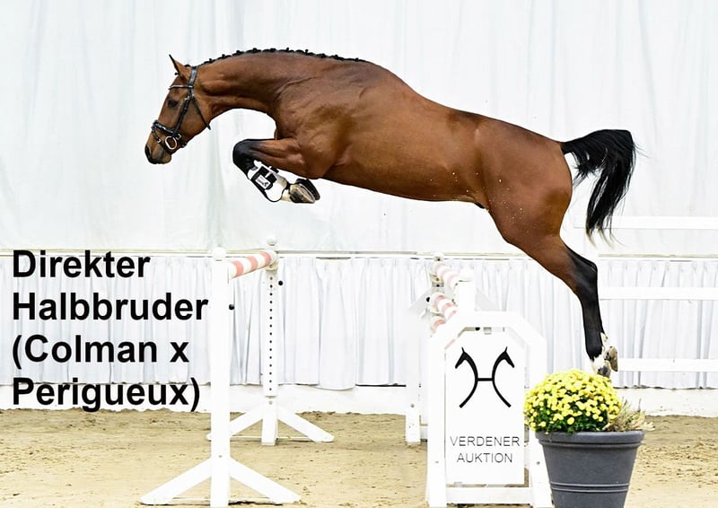 Wywodzi się od międzynarodowo odnoszącej sukcesy matki, również pochodzącej z naszej hodowli! Kolorowe, dwukierunkowo utalentowane i równie eleganckie źrebię klaczy, odpowiednie do wszystkich dyscyplin. Dzięki typowo spokojnemu i zrównoważonemu charakterowi, który jest charakterystyczny dla linii Café au lait, to młode konie będą świetnym partnerem zarówno dla profesjonalistów, jak i amatorów oraz mniej doświadczonych jeźdźców – zarówno do sportu, jak i rekreacji! Pochodzi z drugiego rocznika naszego młodego ogiera „Cafe's Don Rubin”, który już jako trzyletni zachwycił na swojej HLP, będąc najmlodszym koniem wśród uczestników! Urodzony w sierpniu, mimo półrocznego opóźnienia w porównaniu do wielu innych trzyletnich, wyróżnił się spokojem, łatwością skoku i pozytywnym nastawieniem do pracy. W zeszłym roku, mając 4 lata, wygrał konkurs skoków w kategorii A podczas trzeciego startu, będąc jedynym czterolatkiem, który zajął wysokie miejsce z ocenami 8, pokonując konie w wieku 5 i 6 lat! Następnie zdobył brąz w finale Mistrzostw Dobrocker Deister w skokach, będąc po raz pierwszy w tej kategorii! Kolejno zwyciężył w konkursie skoków L. Obecnie jest plasowany i zakwalifikowany do Mistrzostw Krajowych. Równocześnie, mimo młodego wieku, pełni funkcję konia naukowego dla naszej 8-letniej córki, a także bez problemu startuje w E-skokach z 12-letnimi chłopcami. Przekonuje na każdym kroku jakość, zarówno w budowie, jak i w ruchu! Codziennie zachwyca swoją skocznością, chęcią do nauki i osiągnięciami, pozostając przy tym spokojny i opanowany niczym doświadczony weteran. Idealny również na teren! Absolutnie brak zachowań charakterystycznych dla ogiera, mimo użycia derki. Nasze źrebięta codziennie otrzymują mineralne mieszanki i starter dla źrebiąt, regularnie suplementy EQUISTRO Haemolytan i Ipaligo Foal, odrobaczanie i czyszczenie kopyt to oczywistość. Również matki ciężarne otrzymują specjalistyczne jedzenie dla klaczy, codziennie sokowate karmy, olej lniany oraz siano ad libitum. Dzięki temu nasza młodzież jest zawsze w doskonałym stanie zdrowia. Więcej źrebiąt i młodych koni z naszej własnej hodowli na zapytanie. Na sprzedaż dostępne są również kilka ciężarnych klaczy hodowlanych. Zapytania o filmy i inne materiały wyłącznie wcześniej przez WhatsApp!