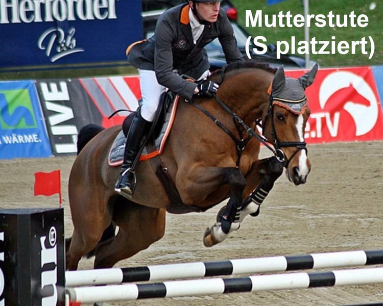 Da una madre di successo internazionale, anch'essa della nostra selezione di allevamento! Puledra colorata, con doppia predisposizione e altrettanto elegante, adatta a tutte le discipline. Grazie al carattere tipicamente equilibrato e lucido, che contraddistingue la linea Café au lait, anche questo giovane cavallo sarà un partner ideale per professionisti, dilettanti e cavalieri meno esperti, sia per sport che per il tempo libero! Da una delle seconde cucciolate del nostro stallone giovane "Cafe's Don Rubin", che ha già impressionato a soli 3 anni durante la sua prova di selezione, risultando il più giovane cavallo in gara! Nato ad agosto, ha brillato nonostante un ritardo di sei mesi rispetto ad altri 3enni, grazie alla sua calma, facilità di movimento e positiva attitudine al lavoro. Lo scorso anno, a 4 anni, ha vinto la classe di salto ostacoli A al suo terzo torneo, distinguendosi come l’unico 4enne tra cavalli di 5 e 6 anni con voti di 8! Successivamente, ha conquistato la medaglia di bronzo nella finale del Campionato di Salto Dobrocker Deister, alla sua prima partecipazione alla categoria Springpferde L!! Poi ha vinto anche nella categoria Springpferde L. Attualmente, è classificato e qualificato per il Campionato Federale. Nonostante la giovane età, funge anche da cavallo da scuola per i nostri figli di 8 anni e partecipa senza problemi a E-Springen con ragazzi di 12 anni. Dimostra qualità eccellenti sia in sella che in esterno! Ogni giorno sorprende con la sua facilità di salto, desiderio di apprendere e prestazioni, rimanendo sempre calmo e sicuro come un veterano. Anche in campagna è un sogno! Assolutamente nessun comportamento da stallone, nonostante l’uso della coperta. I nostri puledri ricevono quotidianamente mangime minerale e starter per puledri, regolarmente EQUISTRO Haemolytan e Ipaligo Foal, trattamenti antiparassitari e ferrature, che sono ovviamente inclusi. Anche le puerpere ricevono durante tutta la gravidanza mangime speciale, succo di erbe, olio di lino e fieno a volontà. In questo modo, i nostri discendenti sono sempre in ottima salute. Altre cucciolate e giovani cavalli della nostra selezione sono disponibili su richiesta. Sono anche spesso in vendita alcune puerpere di razza. Le richieste di video e simili devono essere fatte esclusivamente tramite WhatsApp in anticipo!
