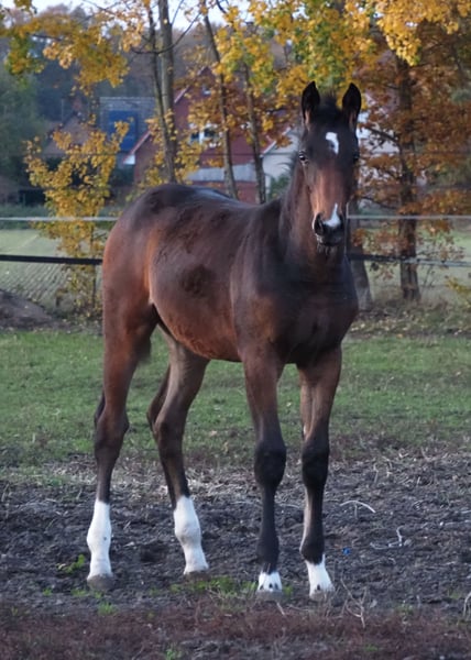 From an internationally successful mother who also comes from our breeding! Colorful, dual-purpose, and equally stylish filly for all disciplines. With the typically clear-headed and balanced character that is characteristic of the Café au Lait line, this young horse will be a great partner for professionals, amateurs, and less experienced riders alike, whether for sport or leisure! From the second crop of our young stallion "Café's Don Rubin," who already impressed at his performance test as the absolute youngest horse at just three years old! Born only in August, he shone despite being six months younger than many other three-year-olds, showcasing his coolness, rideability, and positive work ethic. Last year, at four years old, he won at his third competition in the Spring Horse A class and was highly placed as the only four-year-old against five and six-year-olds with scores of 8! He then won bronze in the final of the Dobrocker Deister Spring Horse Championship in his very first Spring Horse L! Subsequently, he also won in Spring Horse L. At the same time, despite his young age, he also serves as a children's teaching horse and easily completes E-jumping courses with 12-year-old boys. He impresses across the board with quality, both in terms of conformation and movement! He continues to amaze daily with his rideability, willingness to learn, and performance, remaining balanced and composed like an old pro. He is also a dream in the field! Absolutely no stallion behavior despite being a stallion. Our foals receive daily mineral feed and foal starter, regularly EQUISTRO Haemolytan and Ipaligo Foal, and worming treatments and farrier care are, of course, a given. The mares also receive special mare feed throughout the entire pregnancy, daily juice feed, and linseed oil, as well as hay ad libitum. This ensures that our offspring are always in the best health condition. Further foals and young horses from our own breeding are available upon request. There are also always several pregnant broodmares for sale. Video inquiries, etc., are only possible in advance via WhatsApp!