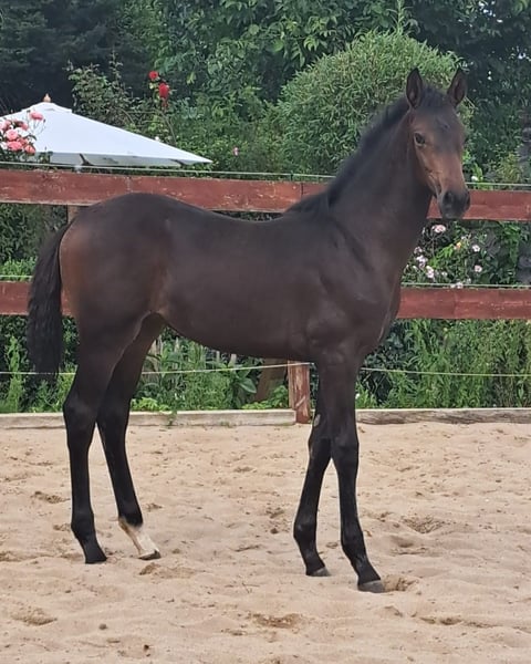 A noble and typy filly born on April 22, 2024. Oldenburg foal premium. Three very good basic gaits. Mastering the foal ABC and very people-oriented. About the dam line: Sorento Old, main premium winner '07, victorious in the heavy class with Stefanie Wolf. Sandro Hit / Donnerhall / Pik Bube. Königsstuhl xx, English Thoroughbred. Has won the Triple Crown and is paternal in the pedigree of Hale Bob Old (Ingrid Klimke).
