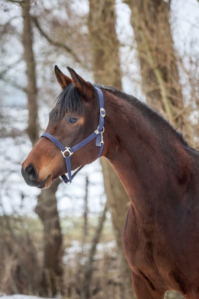 Dastina est née chez nous et a été élevée dans des conditions optimales. Cette jument amicale est malheureusement devenue un peu trop petite pour nos besoins (actuellement 1,57 m). Elle est de construction robuste, bien éduquée, plutôt confiante et dominante, et repose sur un fondement correct et stable. Sa mère est la sœur utérine de Franziskus, et son père commence cette année en classe S. Dastina est manipulable en licol, se laisse charger sans problème, est sage lors du maréchage, est ferrée ou pieds nus, et vit avec deux compagnons dans un box à aire ouverte avec accès direct au paddock. Ceux qui ont le temps et l’envie de la remettre en selle eux-mêmes trouveront ici une belle jument, dotée d’un pedigree exceptionnel, à un prix abordable, et qui a déjà été contrôlée en bonne santé (têtue).