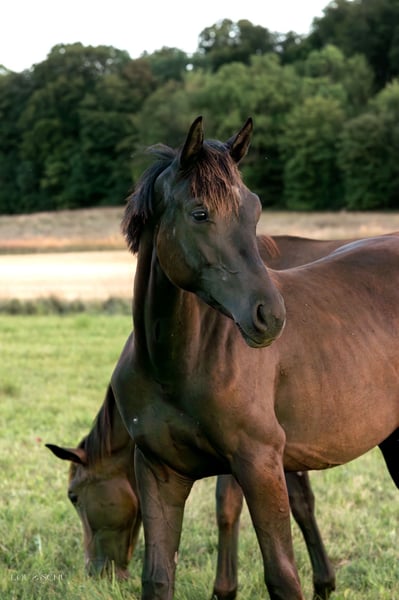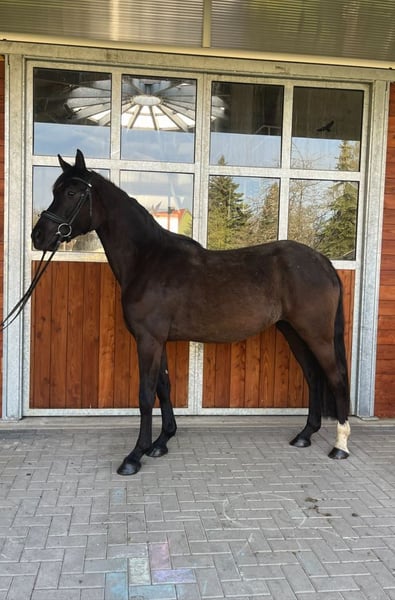 Die im Juli 2023 geborene Rappstute Simsalinde (erwartetes Endmaß ca. 164 cm) vereint Eleganz, Qualität und einen Charakter, der ihresgleichen sucht. Sie überzeugt durch ihre natürliche Präsenz, ihre hervorragende Aufzucht in Züchterhand und eine Abstammung, die keine Wünsche offenlässt: Next Level x Franziskus x Amperé x Spielberg x Dream of Glory – Blutlinien, die für höchste Rittigkeit und sportliche Perspektive stehen (keine Angst vor Franziskusblut!!!). Ihr Exterieur besticht durch eine edle Silhouette mit einer schön angelegten Schulter, die Bewegungen von Ausdruck und Leichtigkeit verspricht. Besonders im Trab offenbart sie eine bemerkenswerte Kniemechanik. Charakterlich ist Simsalinde eine kluge, aufgeschlossene und stets freundliche Partnerin. Sie kennt Spaziergänge allein wie auch als Handpferd im Gelände, ist bestens sozialisiert in der Herde und zeigte sich bislang stets gesund und robust. Die Mutter- und Großmutter war von mir selbst geritten – beide Stuten zeichneten sich durch ihre außerordentliche Rittigkeit und Wohlwollen gegenüber dem Reiter aus. Eine kleine A-Symmetrie am Kopf ist vorhanden und wird selbstverständlich im Preis reflektiert – sie mindert jedoch nicht den Wert dieser außergewöhnlichen jungen Dame. Simsalinde war nie krank und möchte in ihrem Alter nun an neue Aufgaben herangerührt werden. Ideal für Ponyumsteiger und/oder kleine, zierliche Reiter/innen. Simsalinde sollte für den Eigenbedarf bleiben. Der Verkauf erfolgt nur aufgrund von Todesfall meines Partners und dem daraus resultierenden Umständen. Zeitnaher Verkauf erwünscht - aber ein artgerechtes Zuhause ist die oberste Prio!