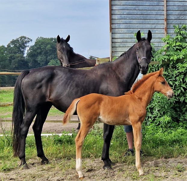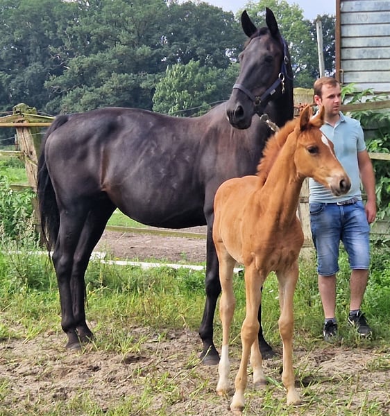 *** Edelgold *** Te koop! Met deze donker vos schoonheid zijn we verheugd om een bewegingskunstenares van de hoogste klasse te mogen presenteren. Ze is een nakomeling van de huidige nationale en regionale kampioen Escanto PS OLD uit een Samba Hit III moeder. Dit absoluut typische veulen combineert kwaliteit en esprit. Uitgerust met drie prachtige basisgangen, zal ze later in de grote dressuurring overtuigen. Ze komt uit de directe merrielijn van de staatsdekhengst Emilio Sanchez. https://www.youtube.com/watch?v=oe2WYIblUyg We verzoeken om telefonische aanvragen of graag via Whatsapp. E-mails worden NIET altijd tijdig bekeken.