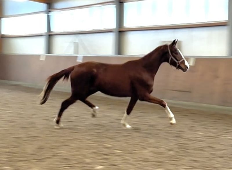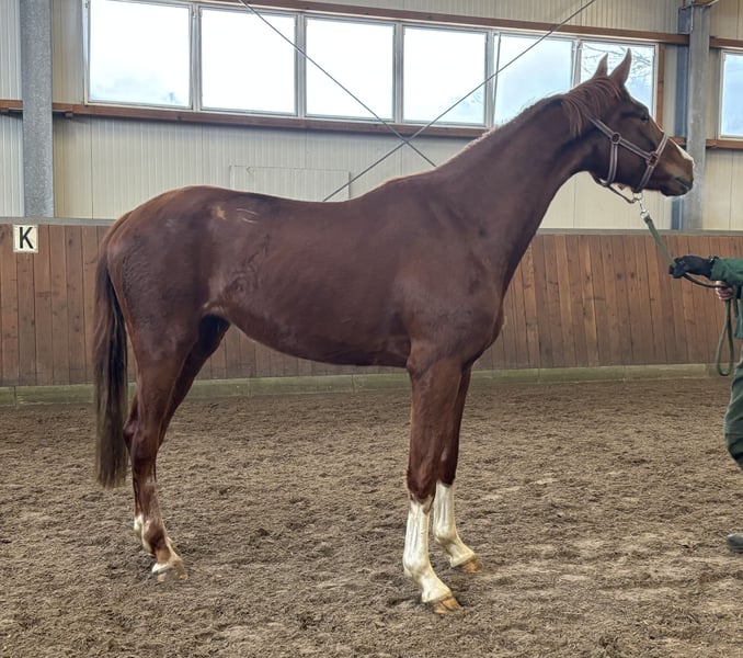 3 jährige Oldenburger Stute von Sezuans Donnerhall x Surprice x Rohdiamant aus einem top Stutenstamm. Zur Zeit 1,70 m Stckm. Diese noch rohe und voll in der Entwicklung stehende Stute ist mit viel Qualität und Schwung ausgestattet. Für den anspruchsvollen Reiter der ein Pferd mit viel Potenzial zum selber Ausbilden sucht. Direkt vom Züchter. Standort: Aufzuchtstall bei Wittmund