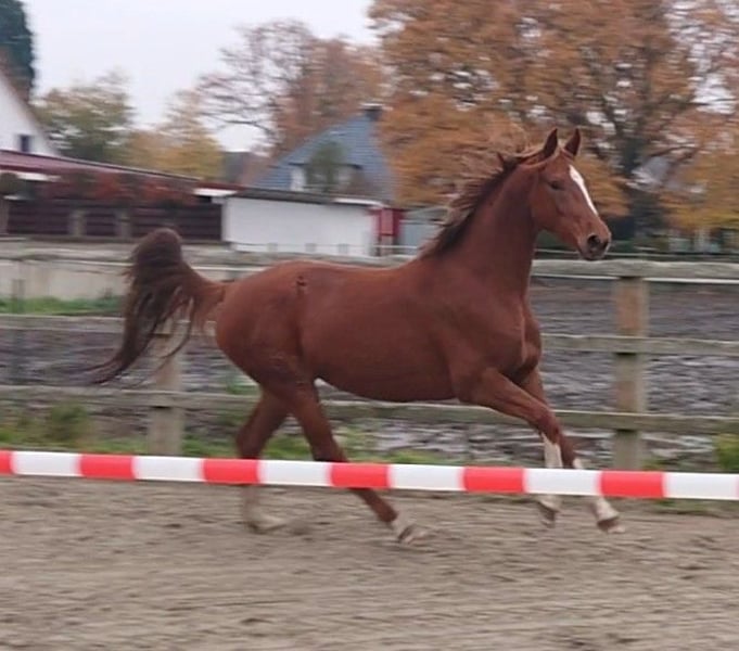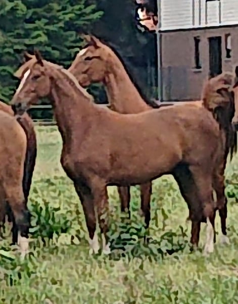 Diese kleine und feine Stute besitzt ein korrektes Fundament und gute Grundgangarten. Ihr sehr liebevoller Charakter macht sie zu einem sympathischen Pferd für die ganze Familie. Im Umgang ist die Stute sehr brav, liebevoll und sehr menschenbezogen. Geschwister zu ihr zeichnen sich durch eine hohe Rittigkeit und tollem Charakter aus, weswegen viele Geschwister mit jugendlichen Reitern/Umsteigern/Amateuren in diesen Bereichen und weiter im Sport erfolgreich sind. Aus diesem Mutterstamm gehen Nachkommen hervor, die sowohl im Jugendbereich erfolgreich sind, als auch bis zur Klasse S in Dressur und Springen. Halbgeschwister zu der Stute haben Erfolge in der Dressur bis zur Klasse M erreicht. Ein Halbbruder zur Mutter weißt Platzierungen in der S-Dressur auf, zwei weitere Halbbrüder zur Mutter sogar international im Springen. aktuell 156cm (wächst noch) 18 Röntgenbilder aus 2024 liegen vor Auf Wunsch kann das Pferd nach Erwerb, wenn Ihnen unsere Philosophie gefällt, zur weiteren Ausbildung gegen einen Energieausgleich für Füttern und Arbeit bei uns verbleiben.