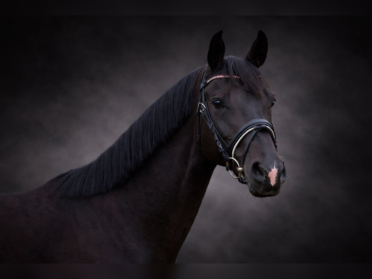 For sale: an approximately 16.1 hh, exceptionally typey and stunning black mare with excellent bloodlines, sired by Total Diamond out of Millenium. Her standout features include a spacious, rhythmical, and steady walk, a powerful, uphill canter, and an elastic, lively trot. The mare impresses not only with her elegant appearance but also with her pleasant, balanced temperament. She instills confidence in her rider and is therefore suitable for ambitious riders as well as for higher-level leisure riding. She is already well-started under saddle and consistently demonstrates a willing attitude, good manners, and an easygoing nature.