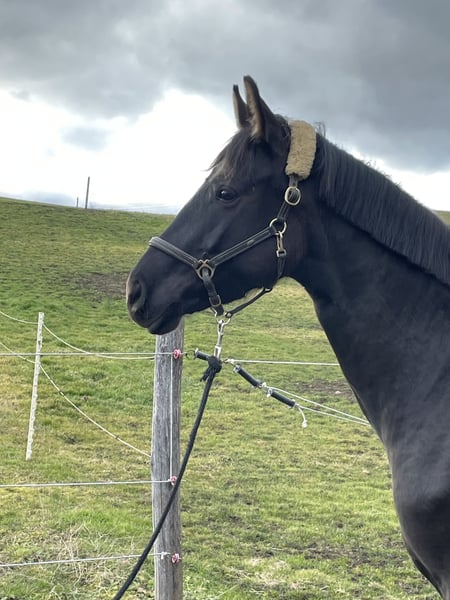 Zum Verkauf steht eine aussergewöhnlich schöne Rappstute ohne Abzeichen, direkt vom Züchter. Mit ihren ca. 1.60 m, kompakter Statur und eleganter Ausstrahlung überzeugt sie sowohl optisch als auch in der Bewegung. Die Stute ist dressurgezogen und verfügt über sehr gute Grundgangarten – taktklar, schwungvoll und stets ausbalanciert. Sie bewegt sich leichtfüssig und geschmeidig und bringt damit beste Voraussetzungen für eine erfolgreiche sportliche Zukunft mit. Ihr toller Charakter macht sie zu einer echten Freude im täglichen Umgang: brav, lernwillig und menschenbezogen. Mit 4 Jahren ist sie bereit für die Ausbildung und wartet darauf, weiter gefördert zu werden. Ein wunderschönes Nachwuchspferd für ambitionierte Reiter:innen oder Liebhaber feiner Dressurpferde.