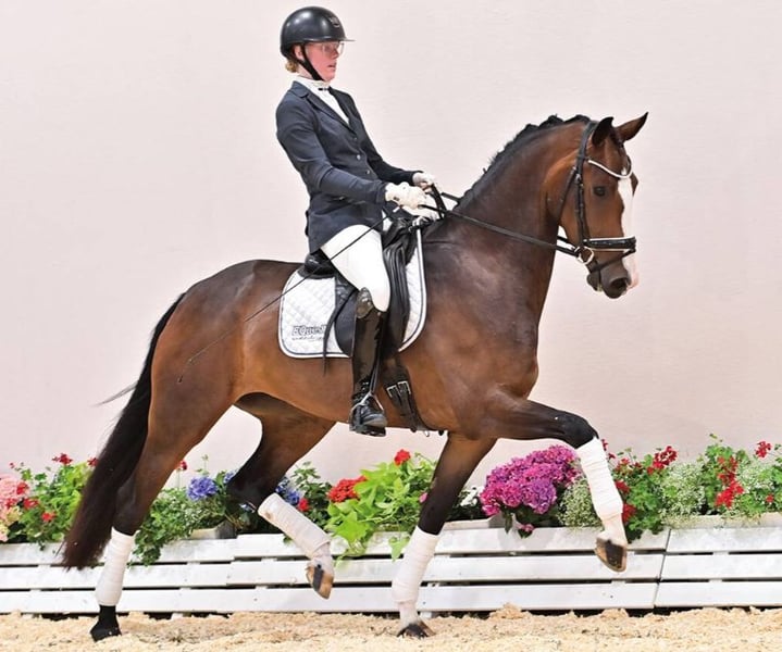 Mittelrahmige, hochinteressante Jameson RS2-Tochter mit viel Ausstrahlung und einer sehr guten Rittigkeit. Zauberfee ist Schwester der Grand Prix-Sieger Laurenti/I. Werth, Dances with Wolves/Carl Hester, GBR, und High Tech/T. Reese Walker, USA.