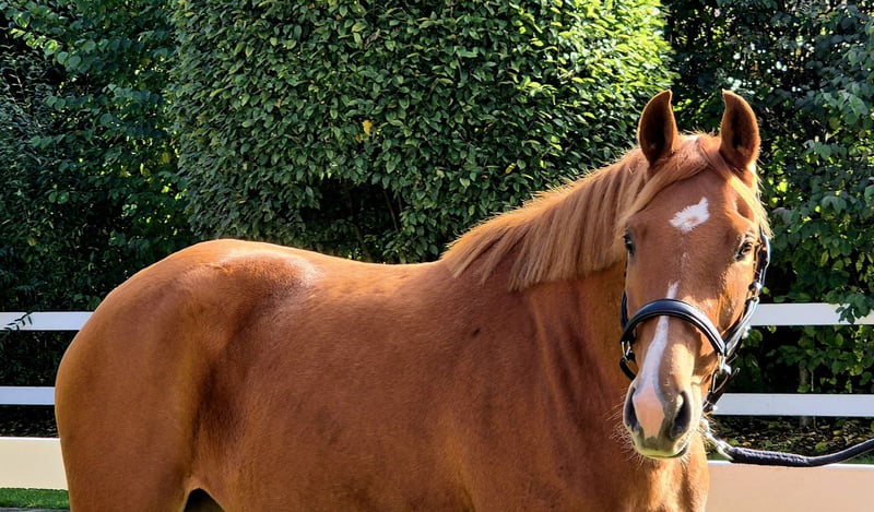 Se vende una preciosa y elegante yegua de color zorro nacida en 2022, procedente de la familia directa de Blue Hors Zepter. Su linaje incluye a Zackerey - Sirlano (Sir Donnerhall) - Wolkentanz II. "Nuvola" es un ejemplar extremadamente sociable, cariñoso y con un carácter muy amable, que disfruta de toda atención que recibe. Cuenta con tres buenas andaduras, mide actualmente aproximadamente 1,65 m de alzada, y es socialmente competente, además de ser tranquila en la herradura y en el remolque. Recientemente se ha comenzado con el trabajo de iniciación en la silla, por lo que ya conoce el contacto con el jinete en movimiento (video). Ha superado esta primera etapa con éxito, y posteriormente ha regresado a su grupo de potros en el paddock. Actualmente, permanece allí, por lo que no es posible montar todavía para una prueba en el momento. Dispone de una radiografía reciente (incluyendo la zona dorsal). Además, sus dientes han sido revisados y está vacunada contra la influenza, herpes y tétanos.