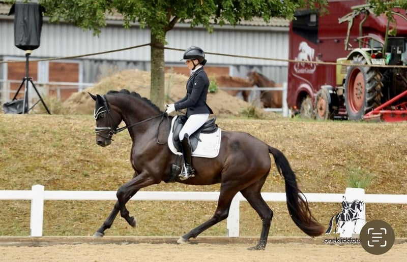 Ludovica ist eine bildschöne, typvolle Tochter des mittlerweile S*** erfolgreichen Lord Europe! Sie besticht mit 3 gleichmäßig guten Grundgangarten, viel Schwung und bester Rittigkeit. Bei bisher zwei Starts in Reitpferdeprüfungen konnte sie eine gewinnen und platzierte sich in einer weiteren auf dem 2. Platz, jeweils mit Noten im 8er Bereich. Sie ist ein sehr neugieriges, lernfreudiges Pferd und macht täglich aufs Neue viel Freude beim Reiten. Sie ist sitzbequem, fein im Maul, leicht an den Hilfen und weder triebig noch heiß. Aktuell lernt sie die Lektionen der Klasse L! Auf Grund ihrer Qualität ist sie sicherlich ein tolles Nachwuchspferd für den anspruchsvolleren Amateur oder auch als Umsteigerpferd denkbar. Sie hat keine Voererkrankungen, ist korrekt geimpft und regelmäßig entwurmt, hat keine Fehlstellung oder weiche Fesselung. Ludovica bewohnt eine große Paddockbox und geht mit einer anderen Stute auf die Koppel. Gute Röntgenbilder aus 2024 liegen vor. Anfragen gerne per WhatsApp an: 0170/2779570